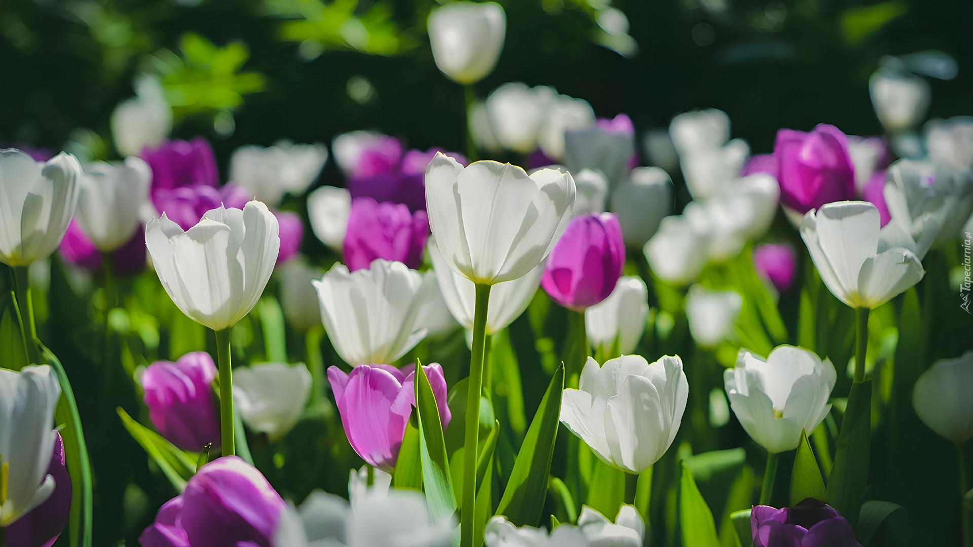 Edytor tapety: Rozświetlone białe i różowe tulipany