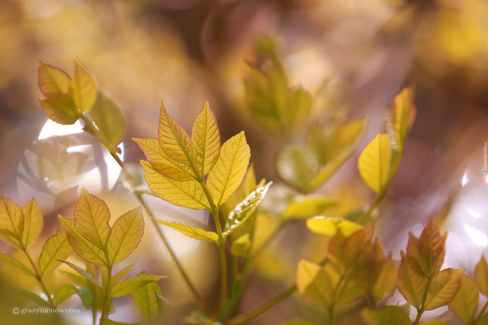 Edytor tapety: Rozświetlone słońcem młode listki