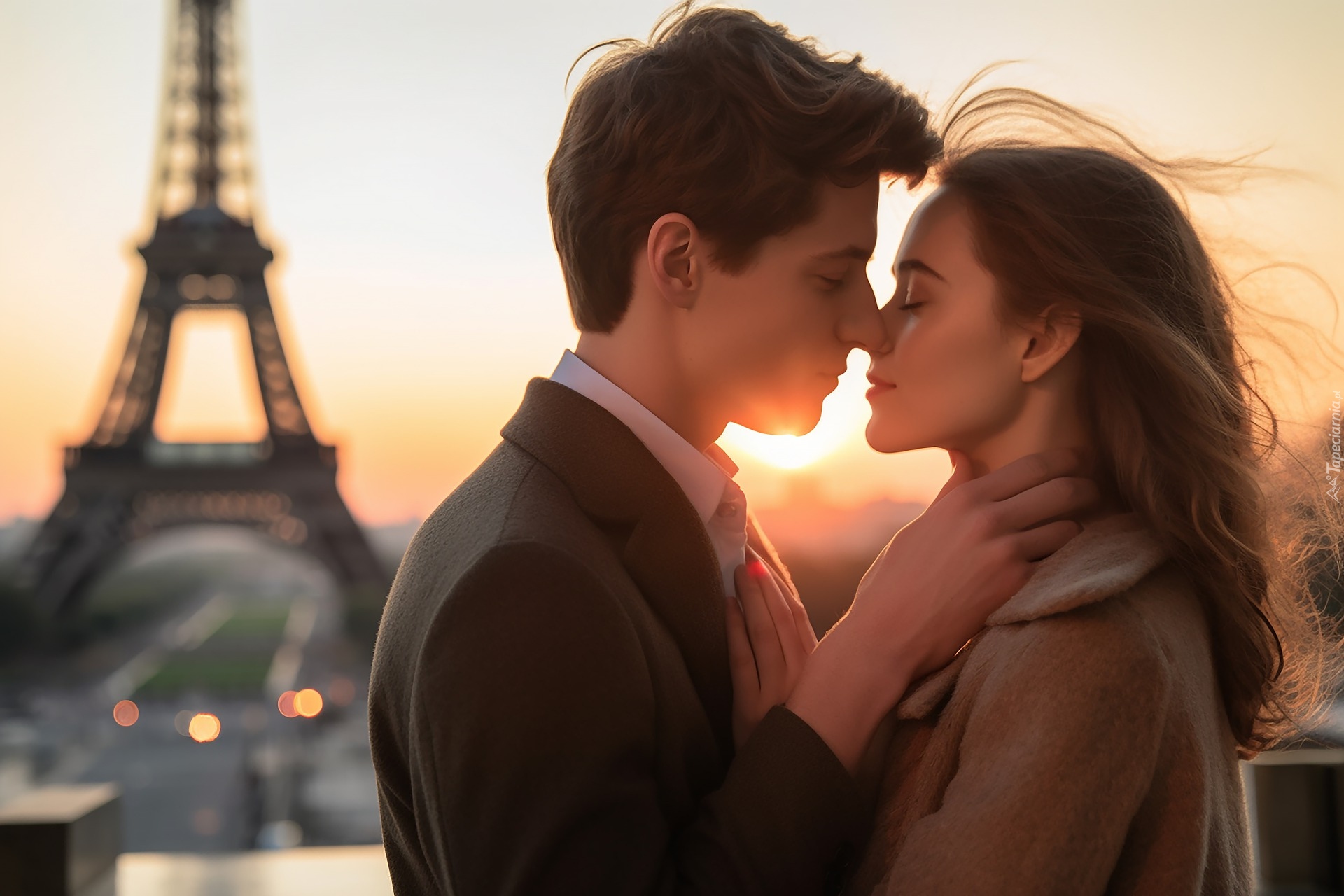 Edytor tapety: Zakochani na tle Wieży Eiffla w Paryżu