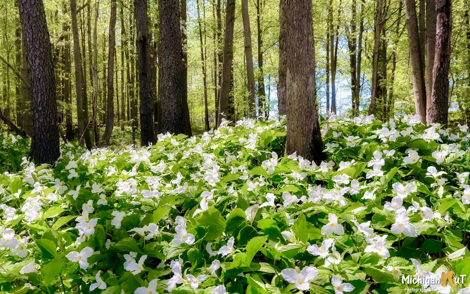 Edytor tapety: Trójlisty wielkokwiatowe w lesie