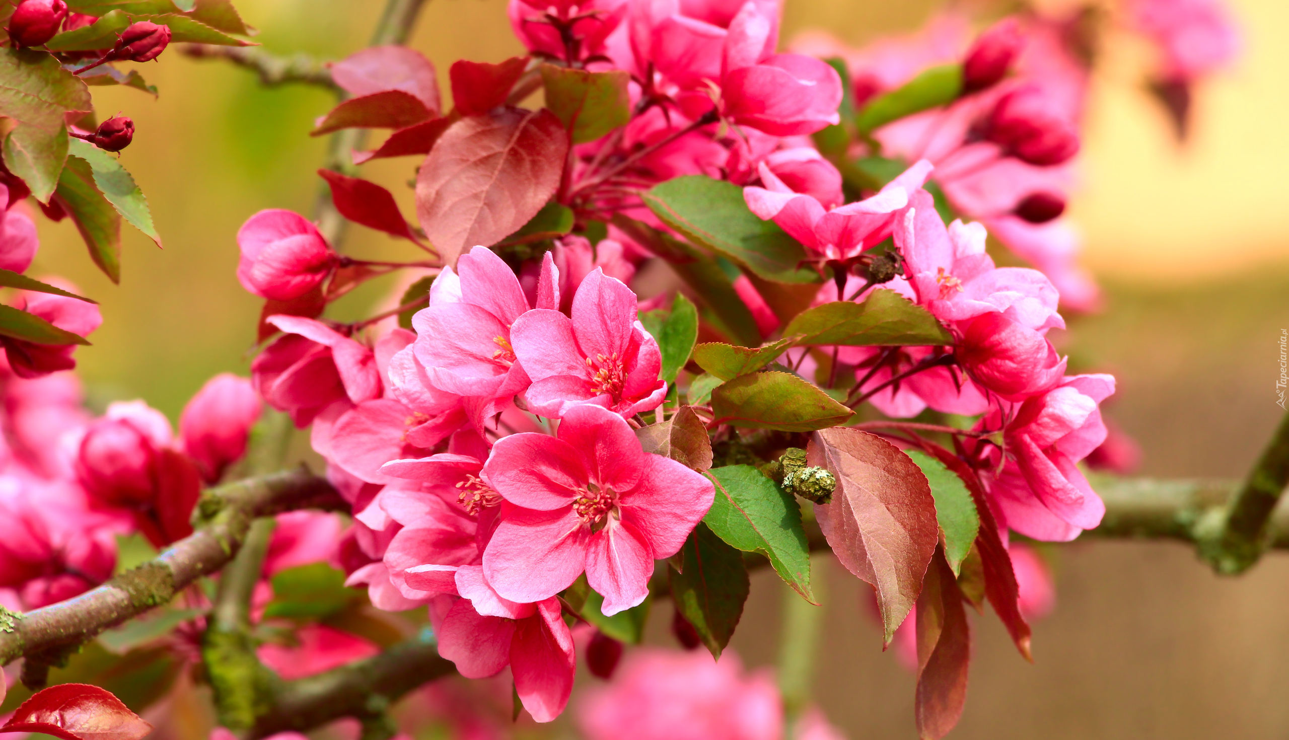 Edytor tapety: Rozświetlone kwiaty drzewa owocowego na gałązce