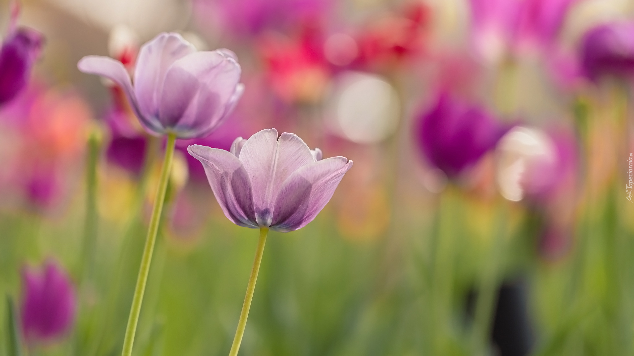 Edytor tapety: Rozmyte tło i dwa rozwinięte tulipany