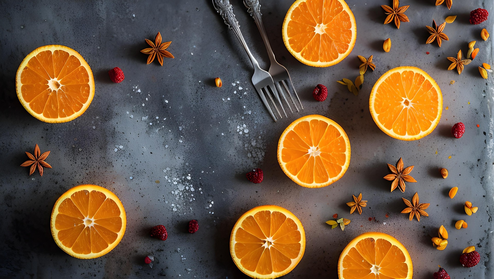 Edytor tapety: Kawałki pomarańczy i anyż na ciemnym tle