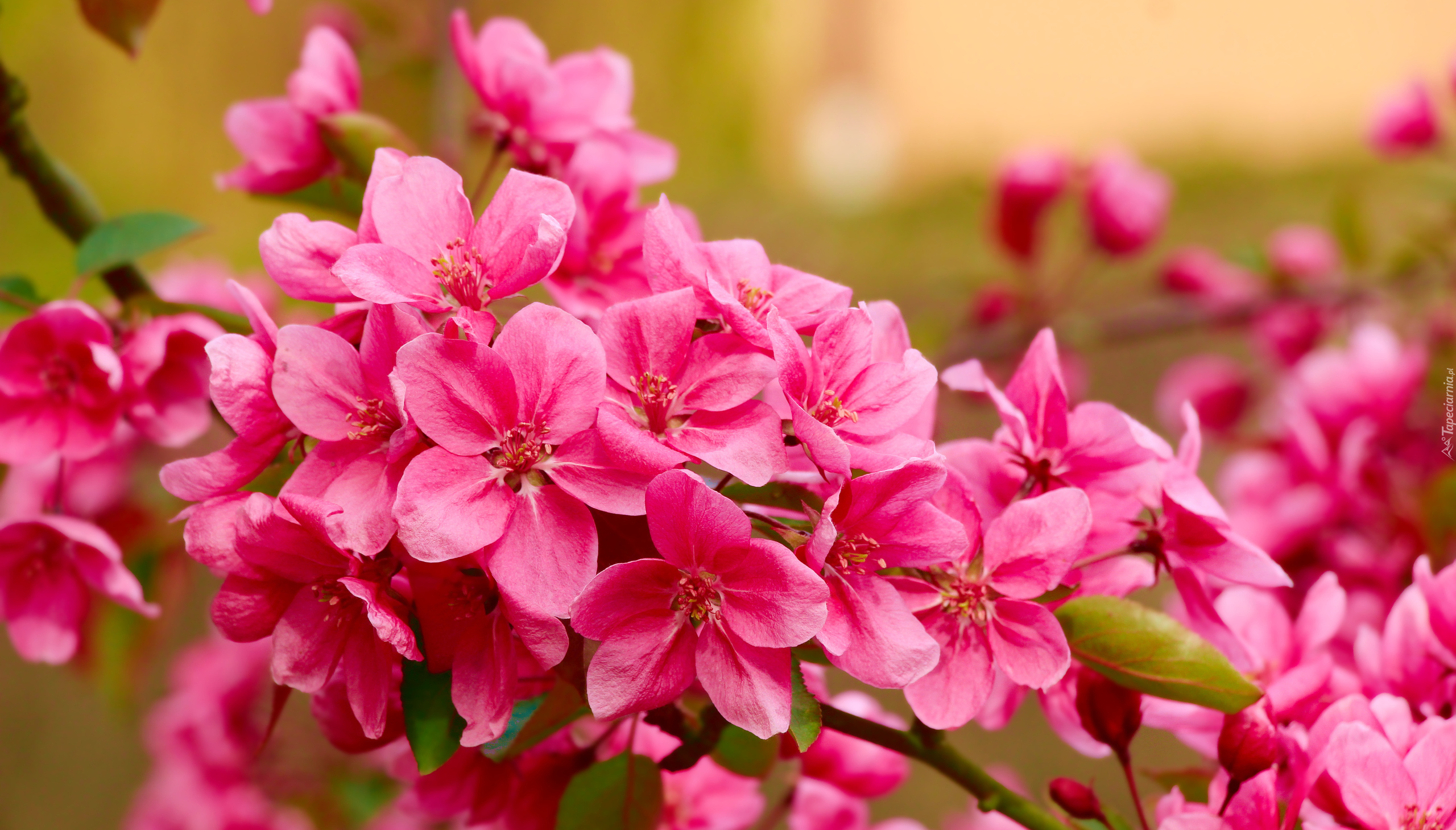 Edytor tapety: Gałązka z kwiatami drzewa owocowego w zbliżeniu