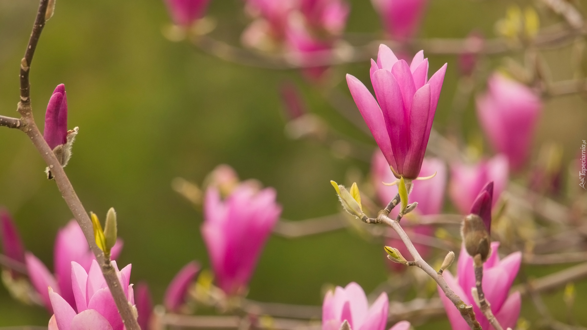 Edytor tapety: Gałązki z rozkwitającymi kwiatami magnolii