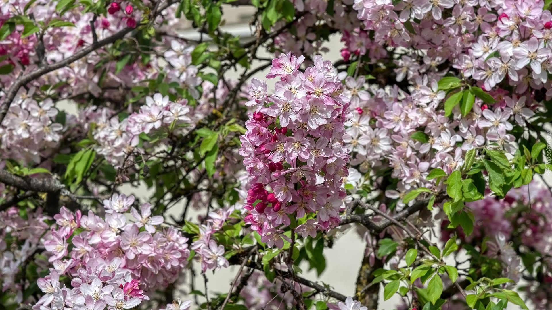Edytor tapety: Zwisające gałązki z kwiatami wiśni