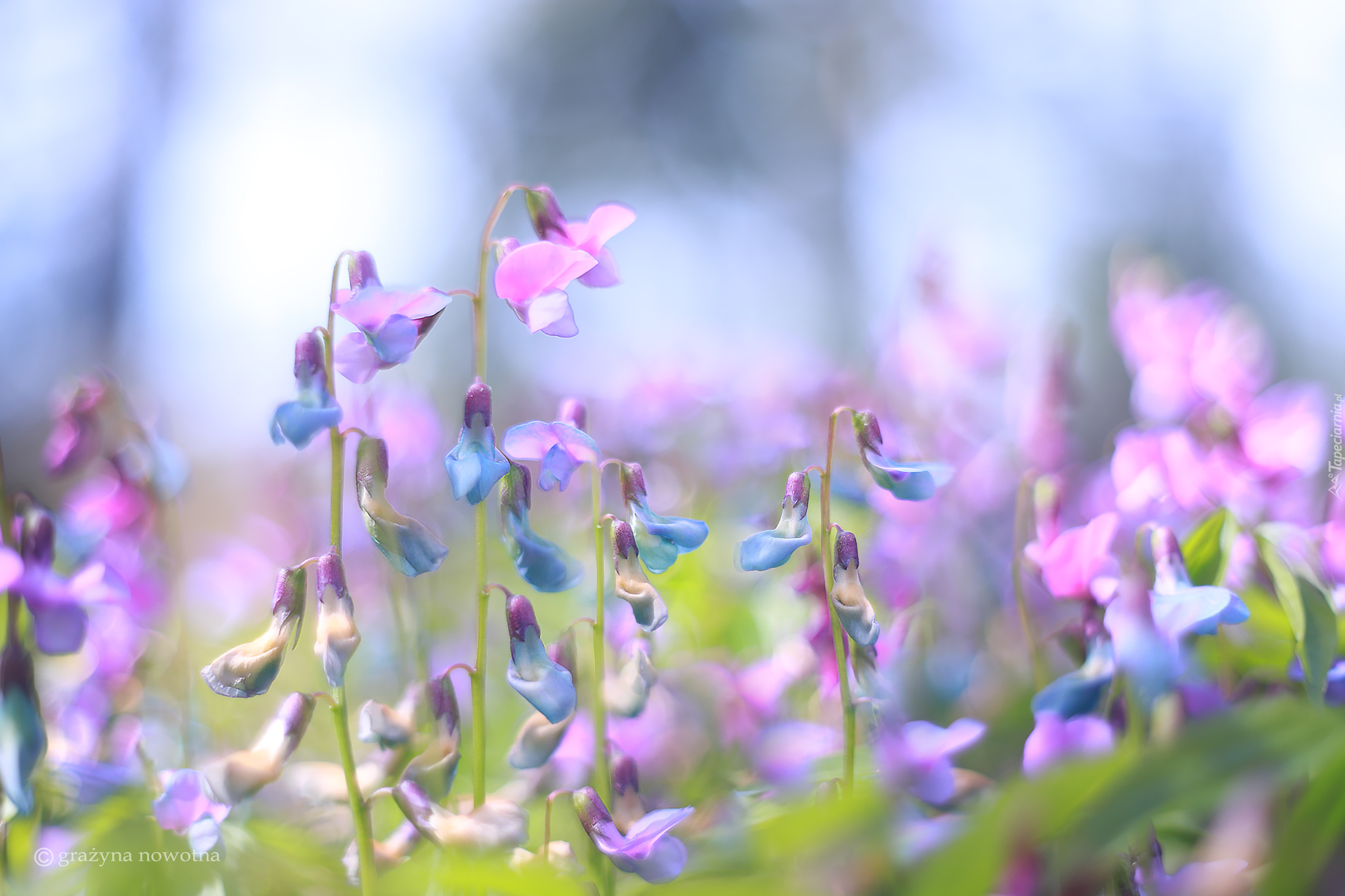 Edytor tapety: Kolorowe kwiaty groszku wiosennego