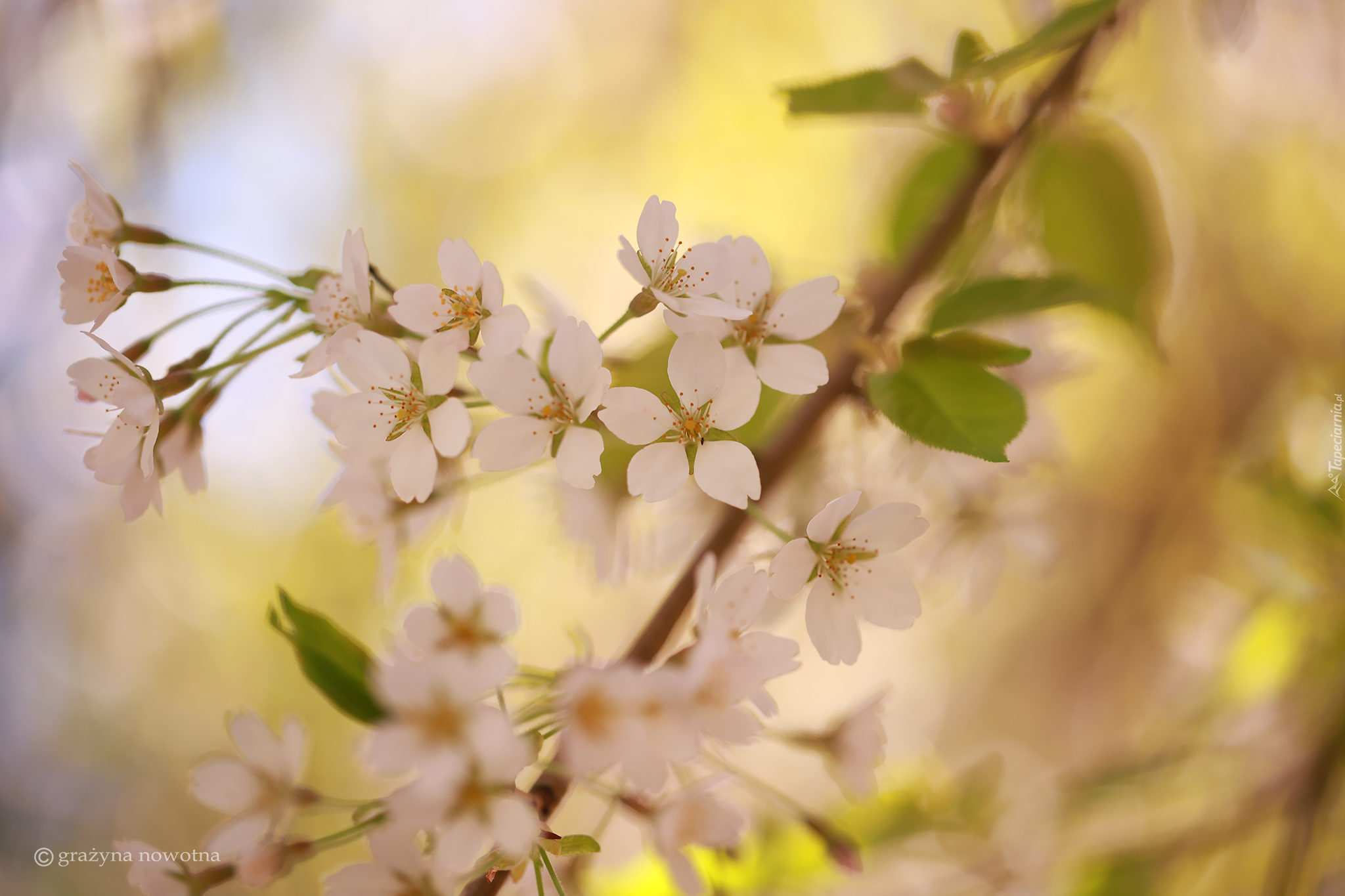 Edytor tapety: Ukwiecona białymi kwiatami gałązka