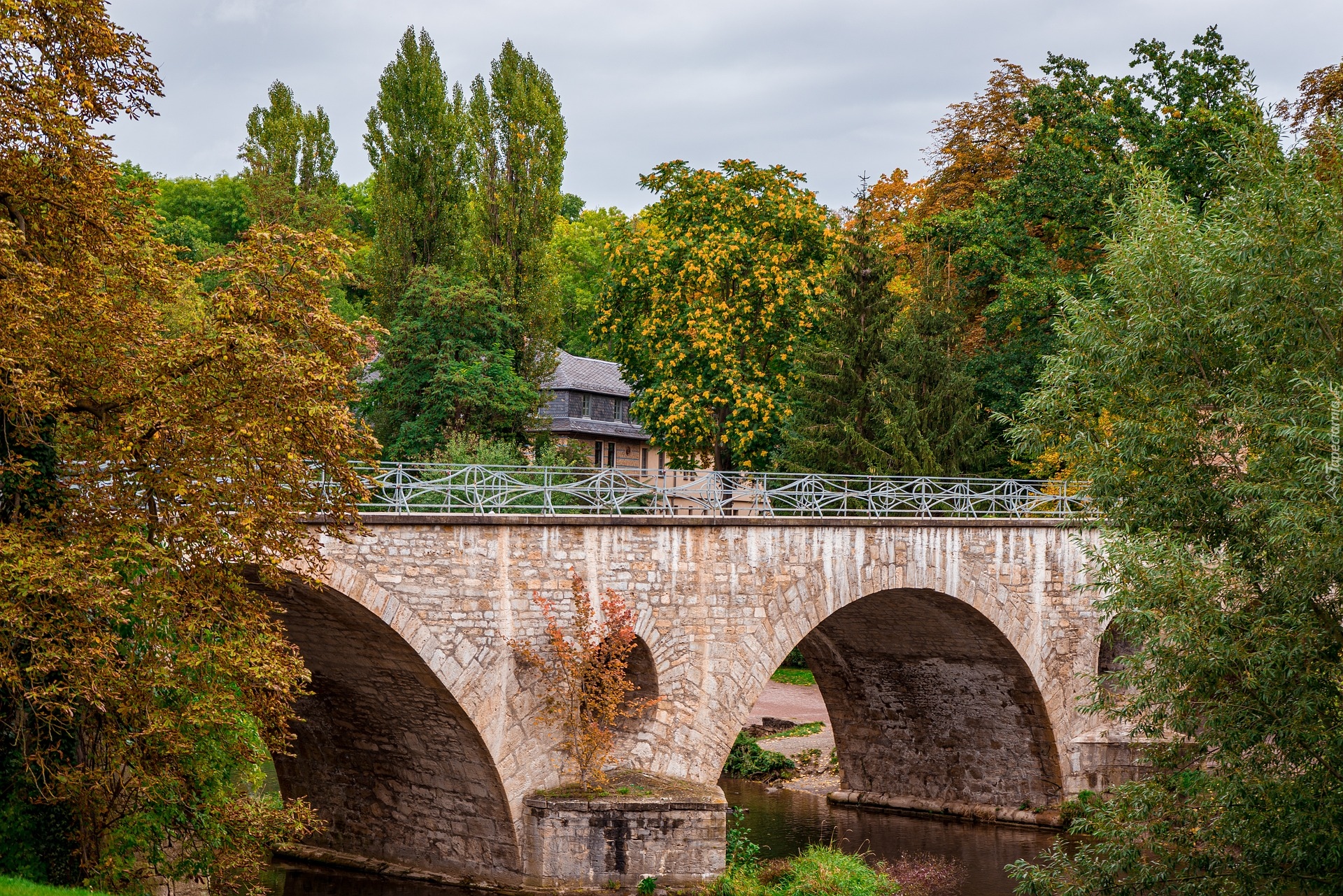 Edytor tapety: Jesienne drzewa przy moście nad rzeką