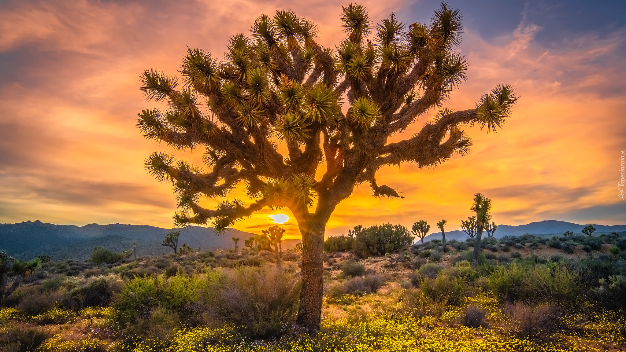 Edytor tapety: Park Narodowy Joshua Tree o zachodzie słońca