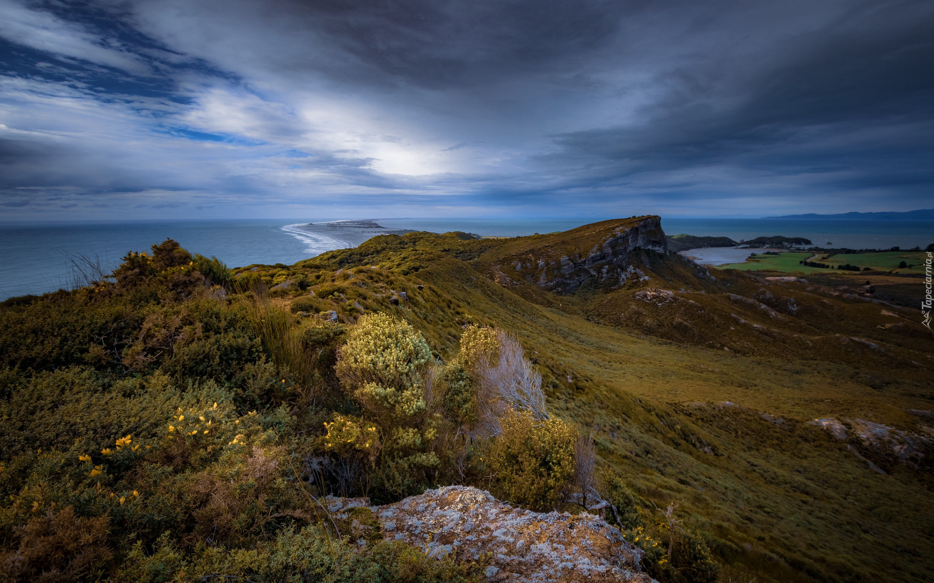 Edytor tapety: Pochmurne niebo nad skałami na wybrzeżu