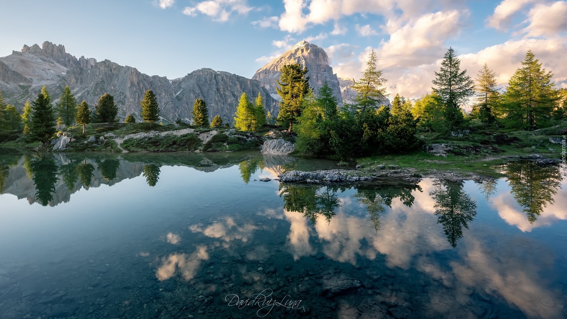 Edytor tapety: Zielone drzewa nad jeziorem Lago Limides