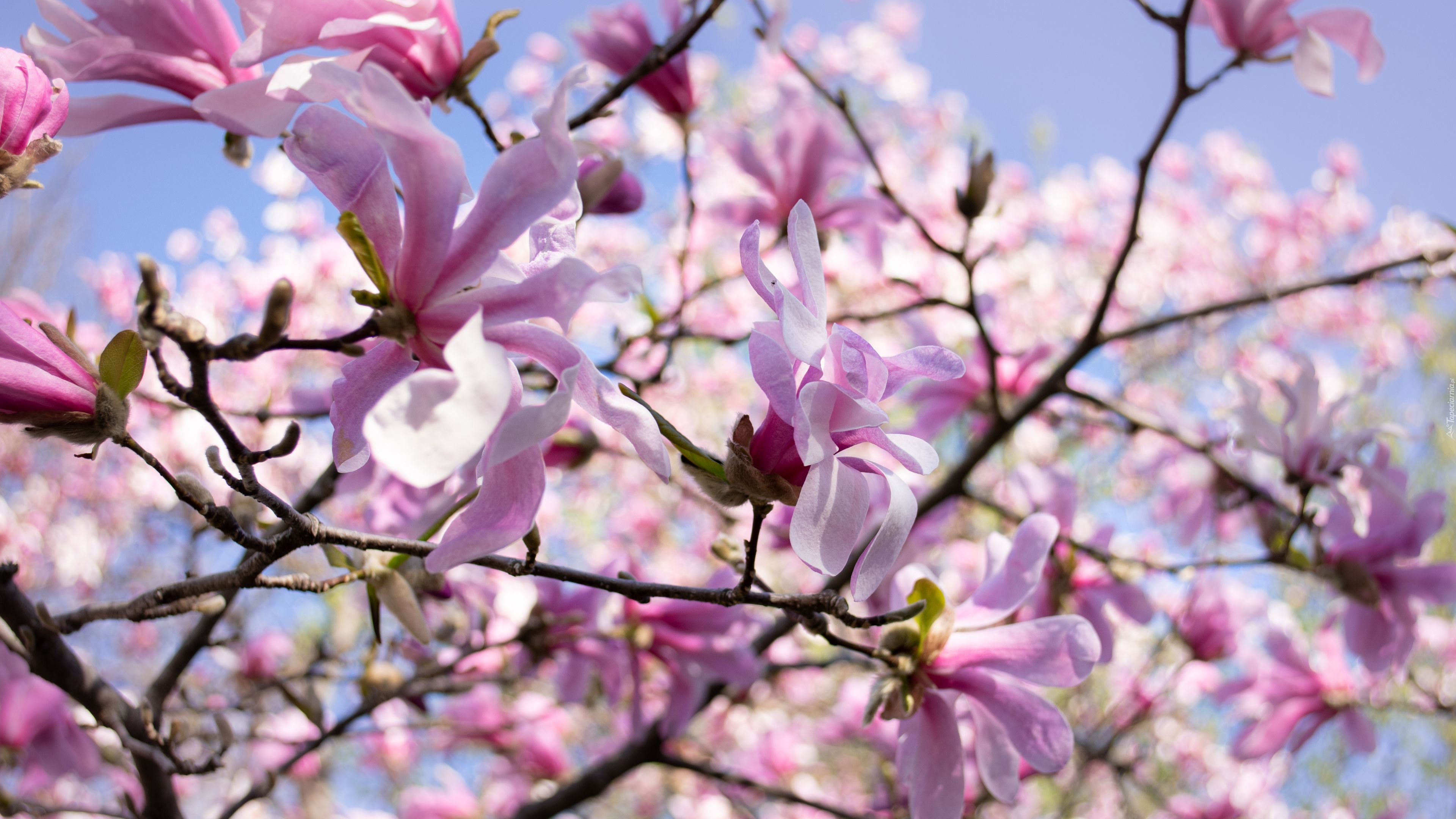 Edytor tapety: Kwiaty magnolii i pąki na gałązkach