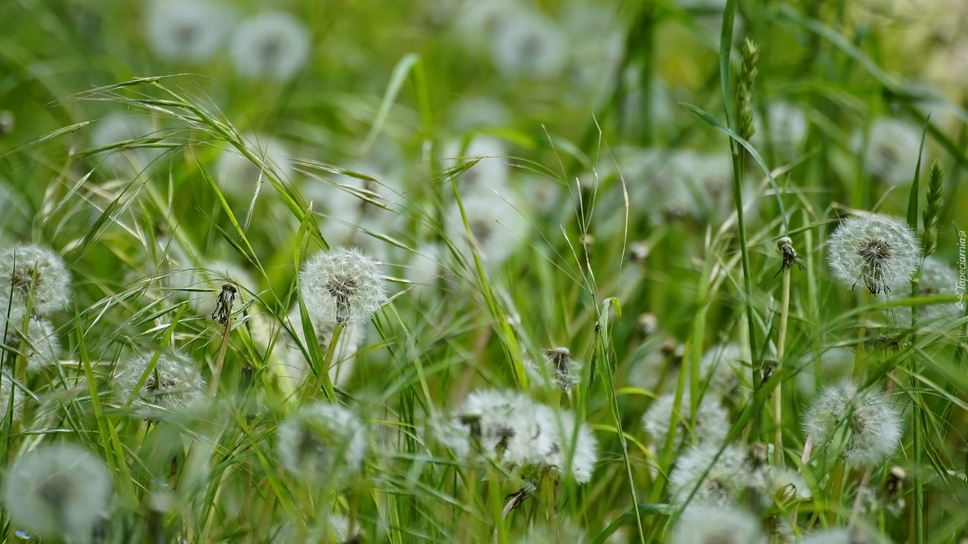 Edytor tapety: Dmuchawce w zielonej trawie
