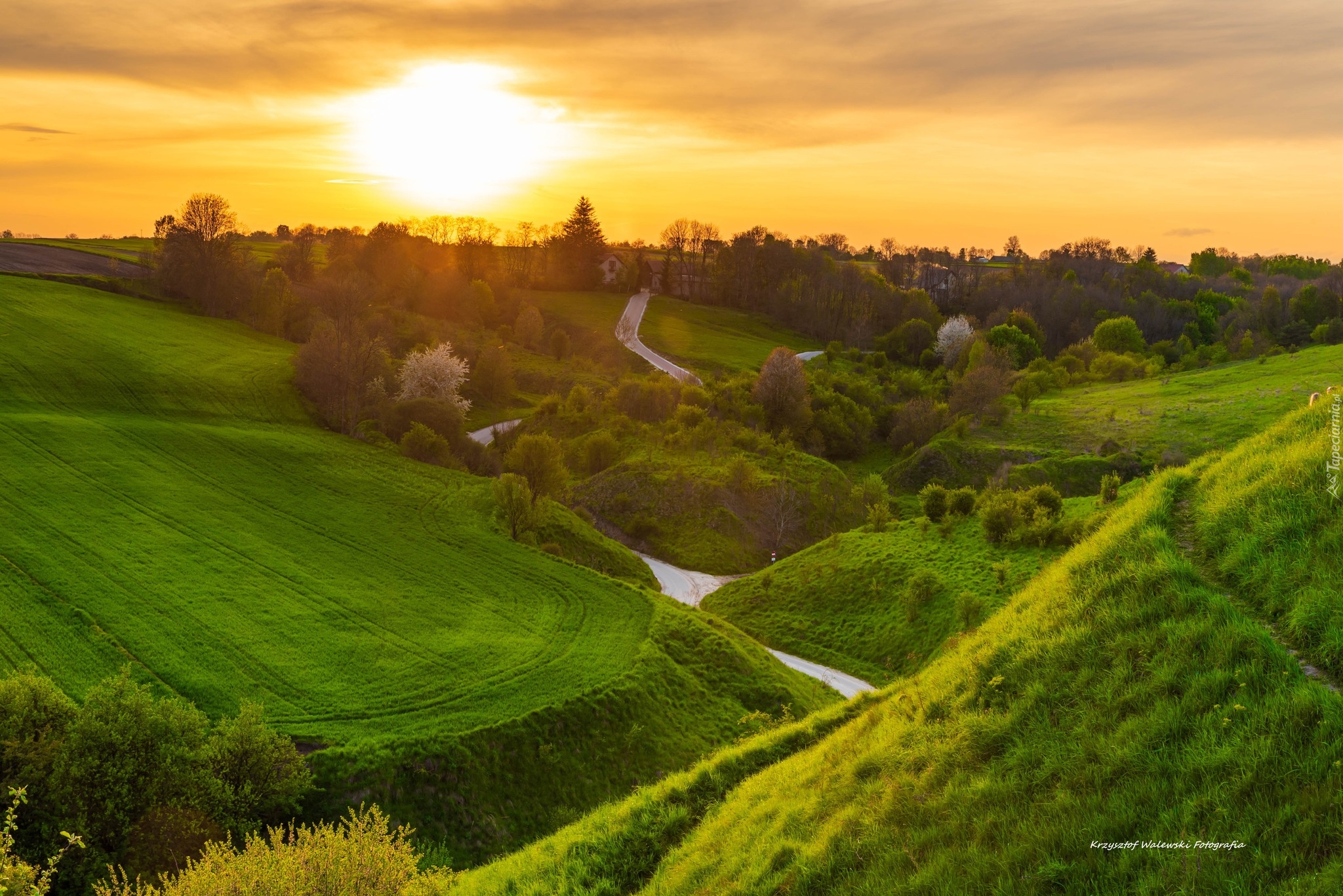 Edytor tapety: Kręta droga wśród wzgórz i pól