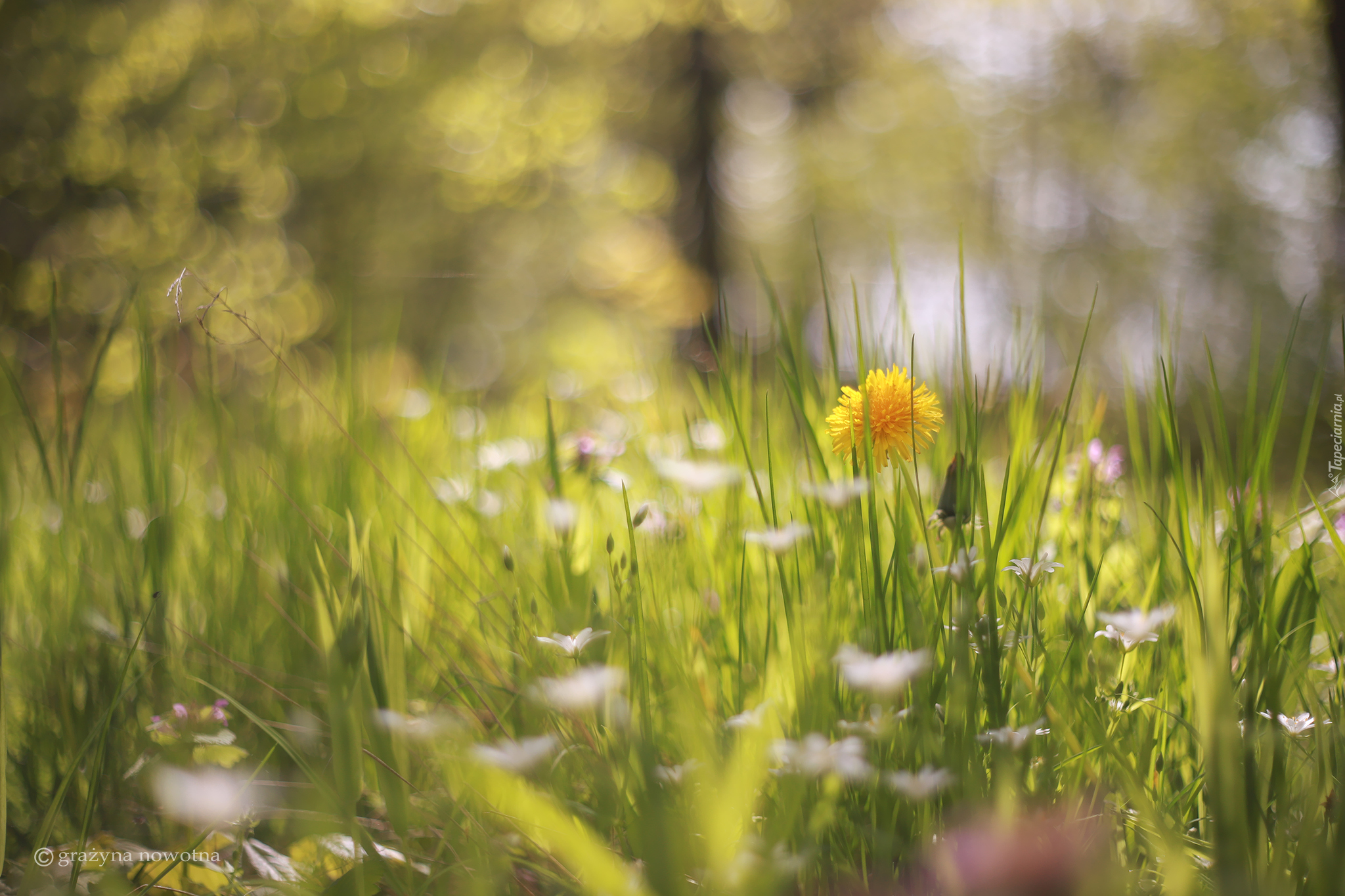 Edytor tapety: Mniszek lekarski w rozmytej trawie