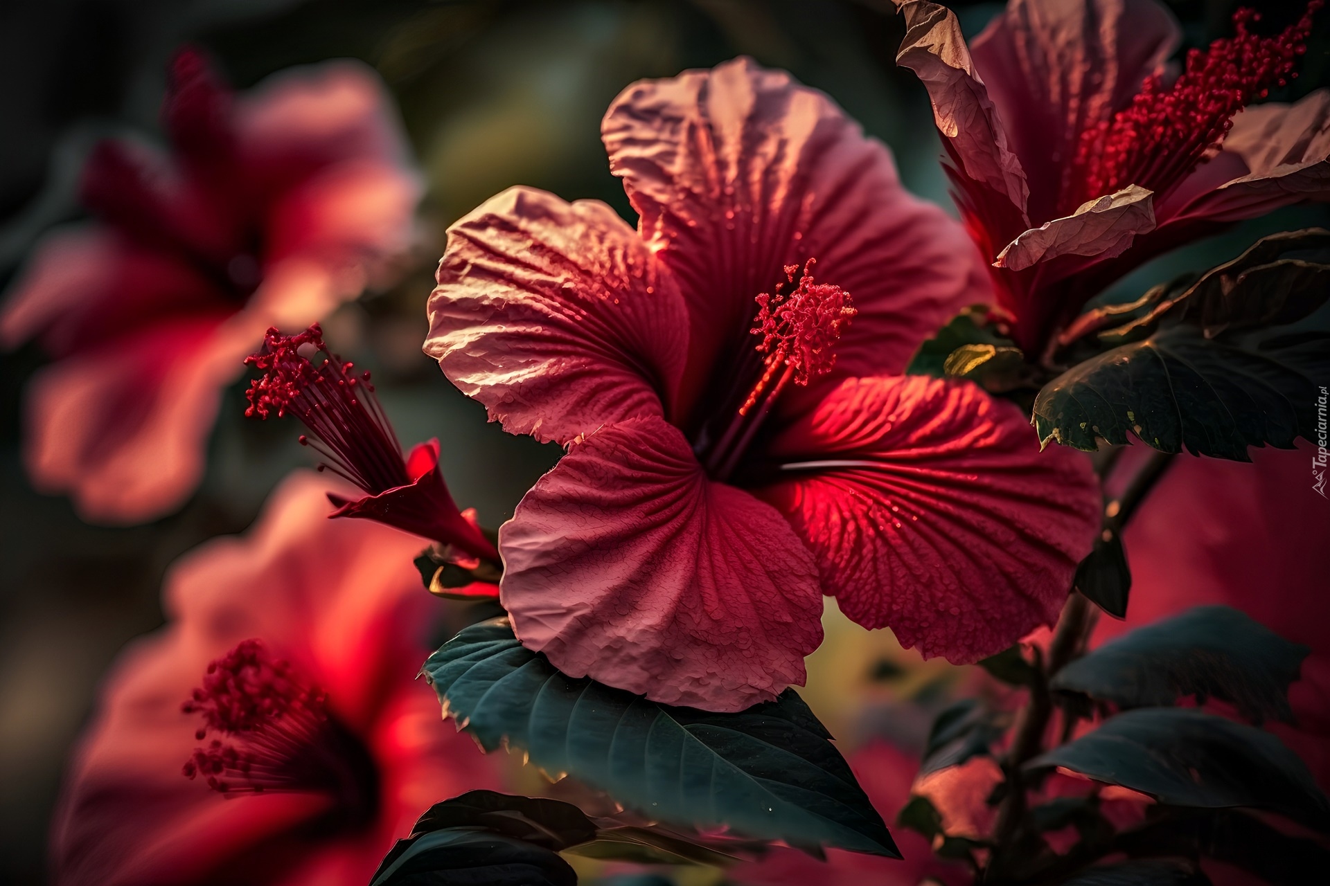 Edytor tapety: Rozświetlony czerwony hibiskus w grafice