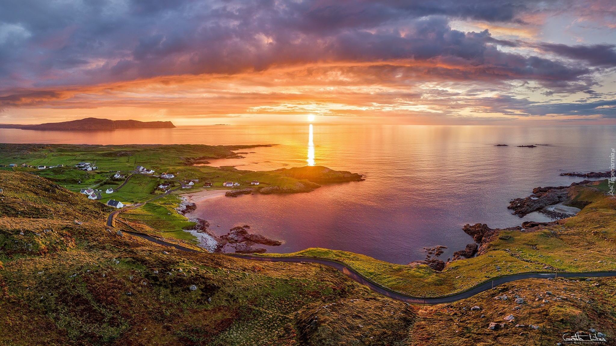 Edytor tapety: Półwysep Rosguill w blasku zachodzącego słońca nad morzem