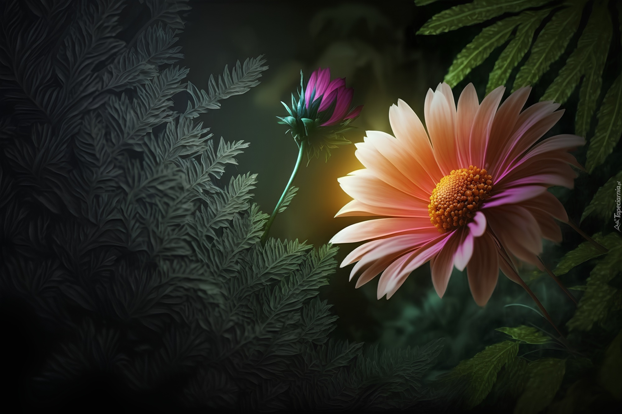 Edytor tapety: Rozkwitnięta gerbera na tle liści