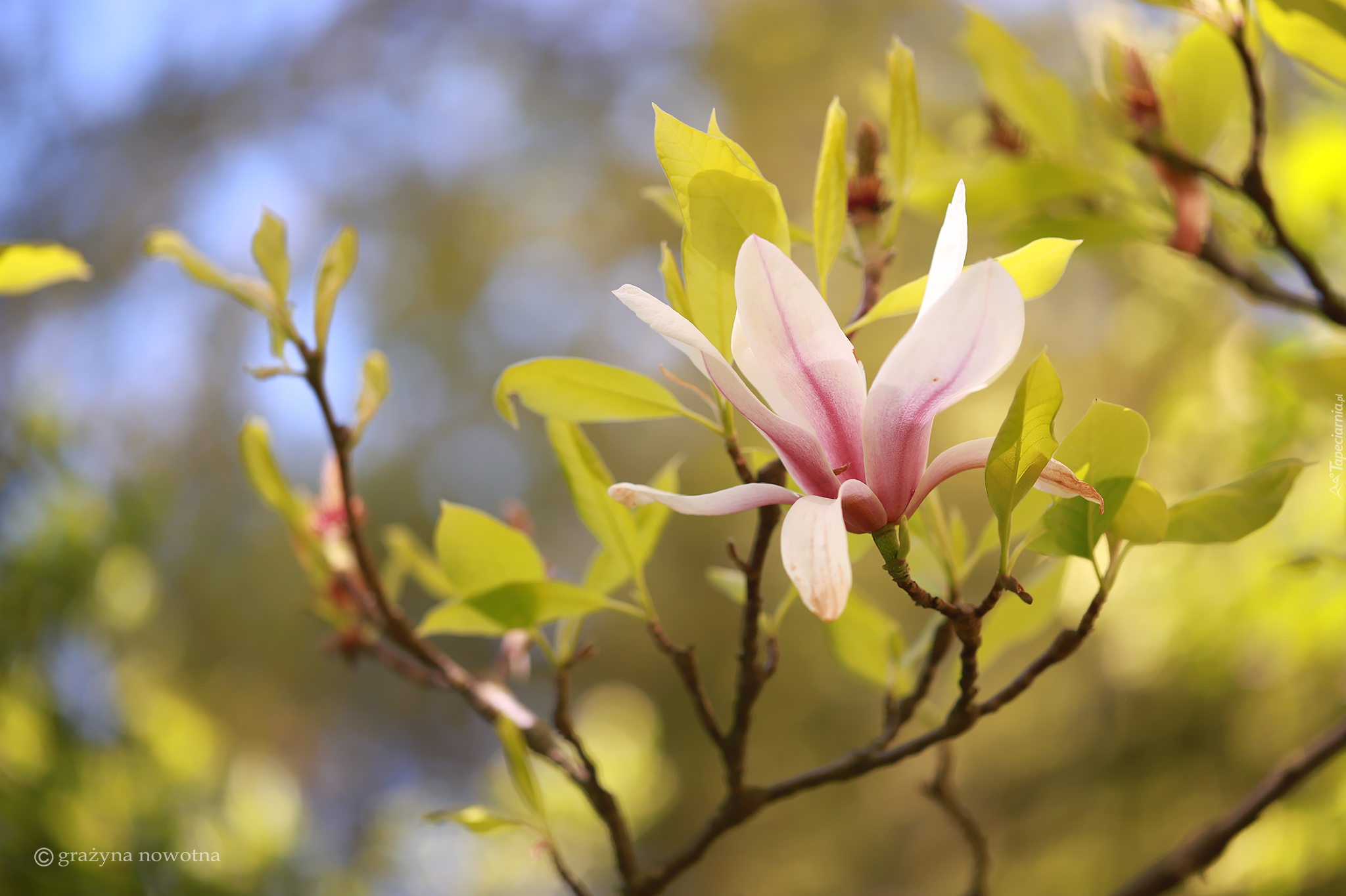 Edytor tapety: Magnolia z młodymi listkami