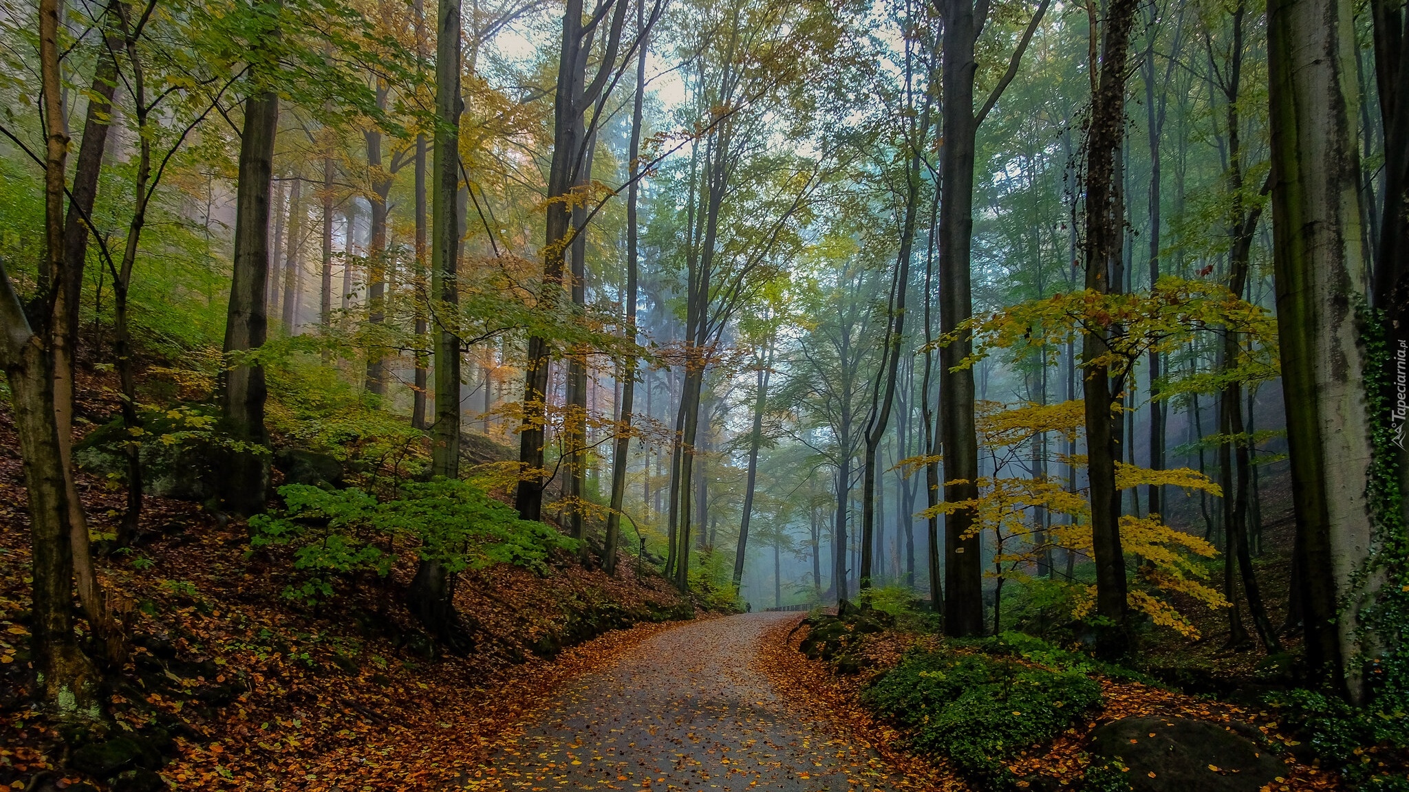 Edytor tapety: Drzewa na skarpie przy leśnej drodze