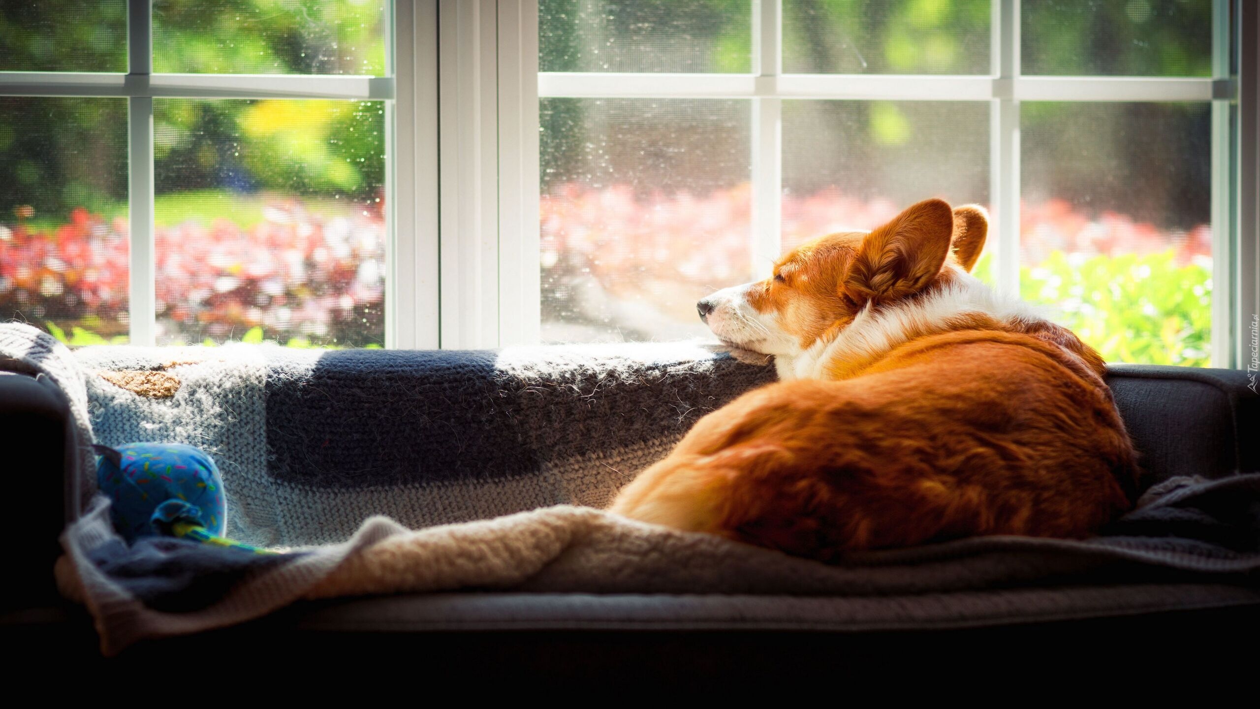 Edytor tapety: Welsh corgi pembroke odpoczywający przy oknie