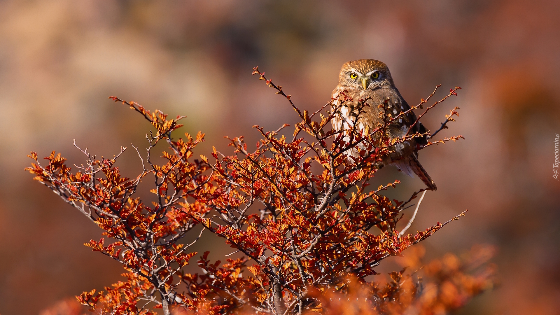 Edytor tapety: Sóweczka magellańska na gałęzi