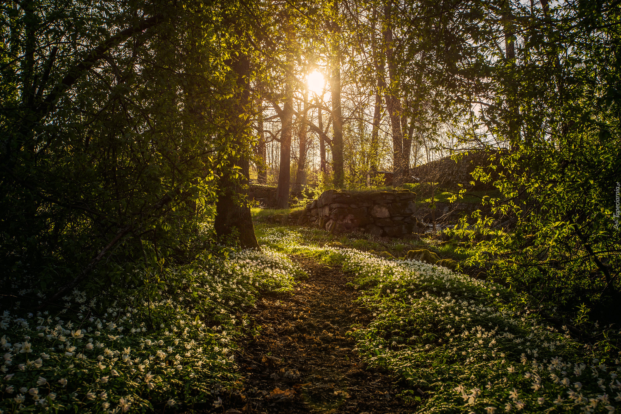 Edytor tapety: Zawilce pod drzewami