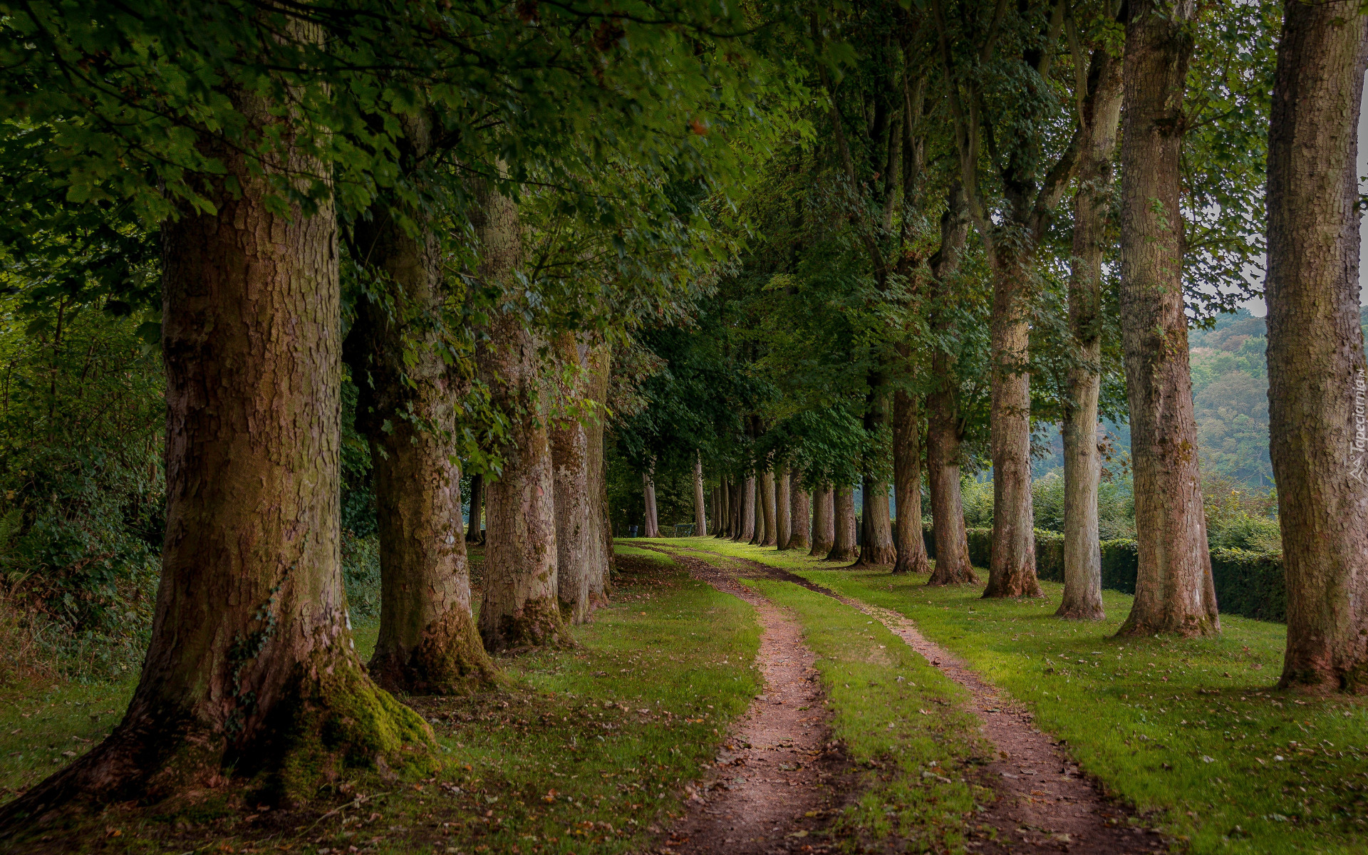 Edytor tapety: Szpalery drzew przy parkowej drodze
