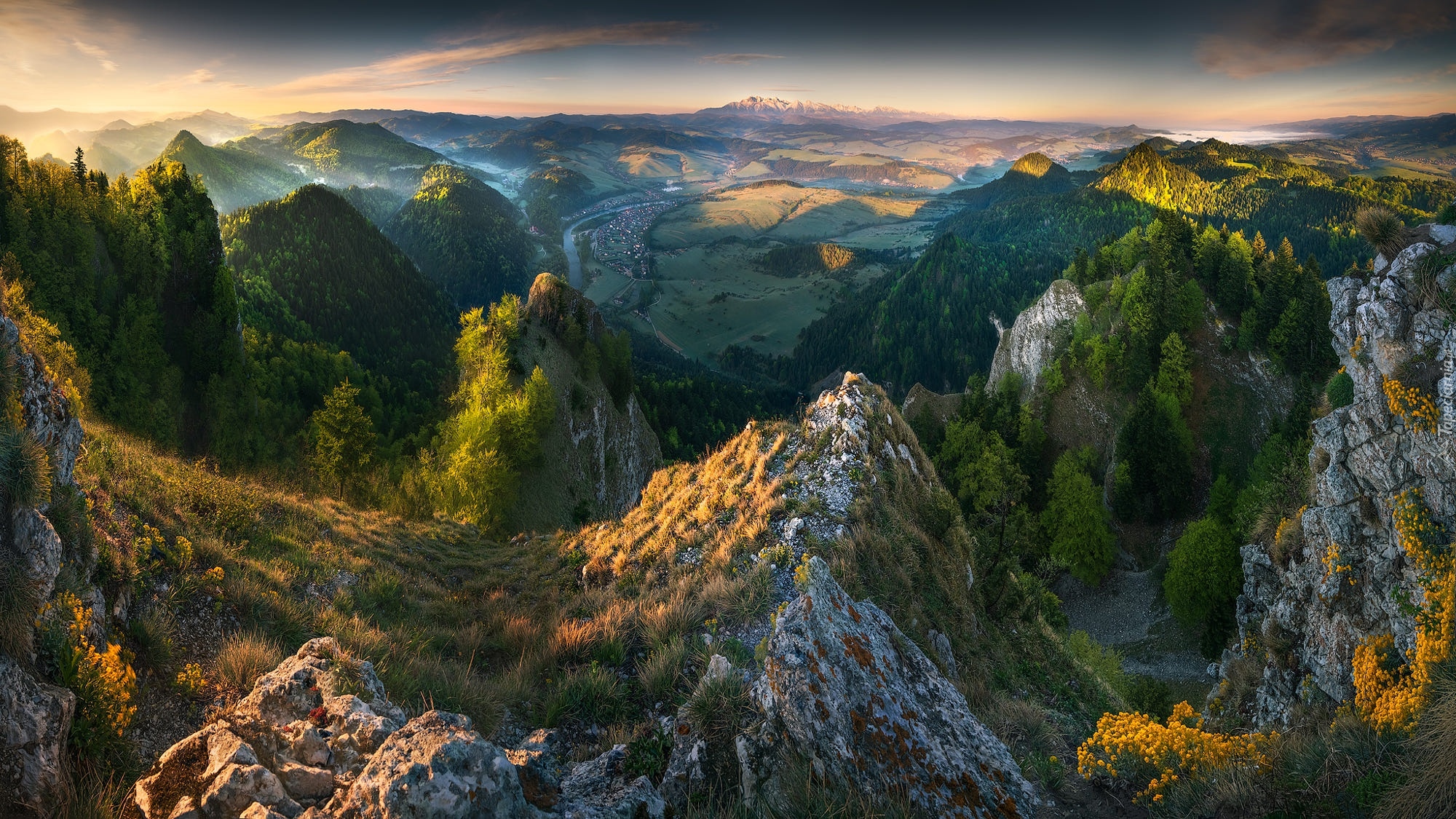 Edytor tapety: Panorama gór w słonecznym blasku