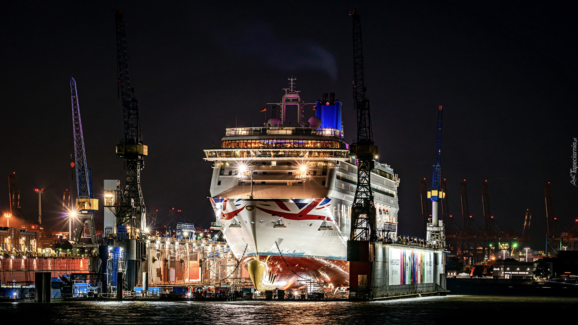 Edytor tapety: Statek Aurora w porcie w Hamburgu nocą