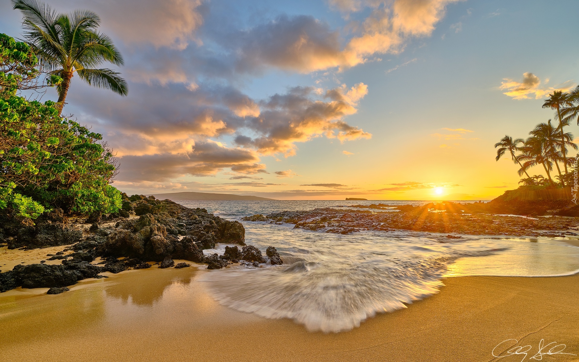 Edytor tapety: Zachód słońca na hawajskiej plaży w Lahaina