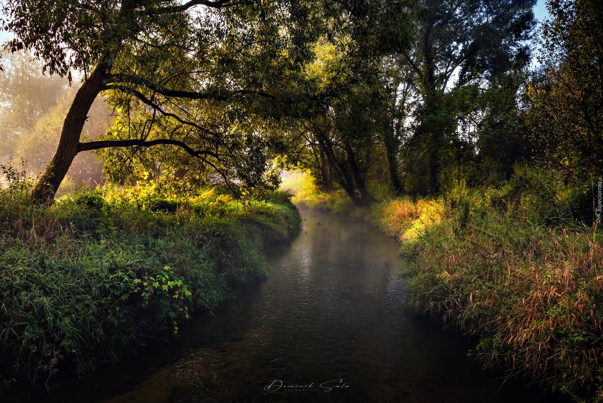 Edytor tapety: Drzewa nad rzeczką o poranku