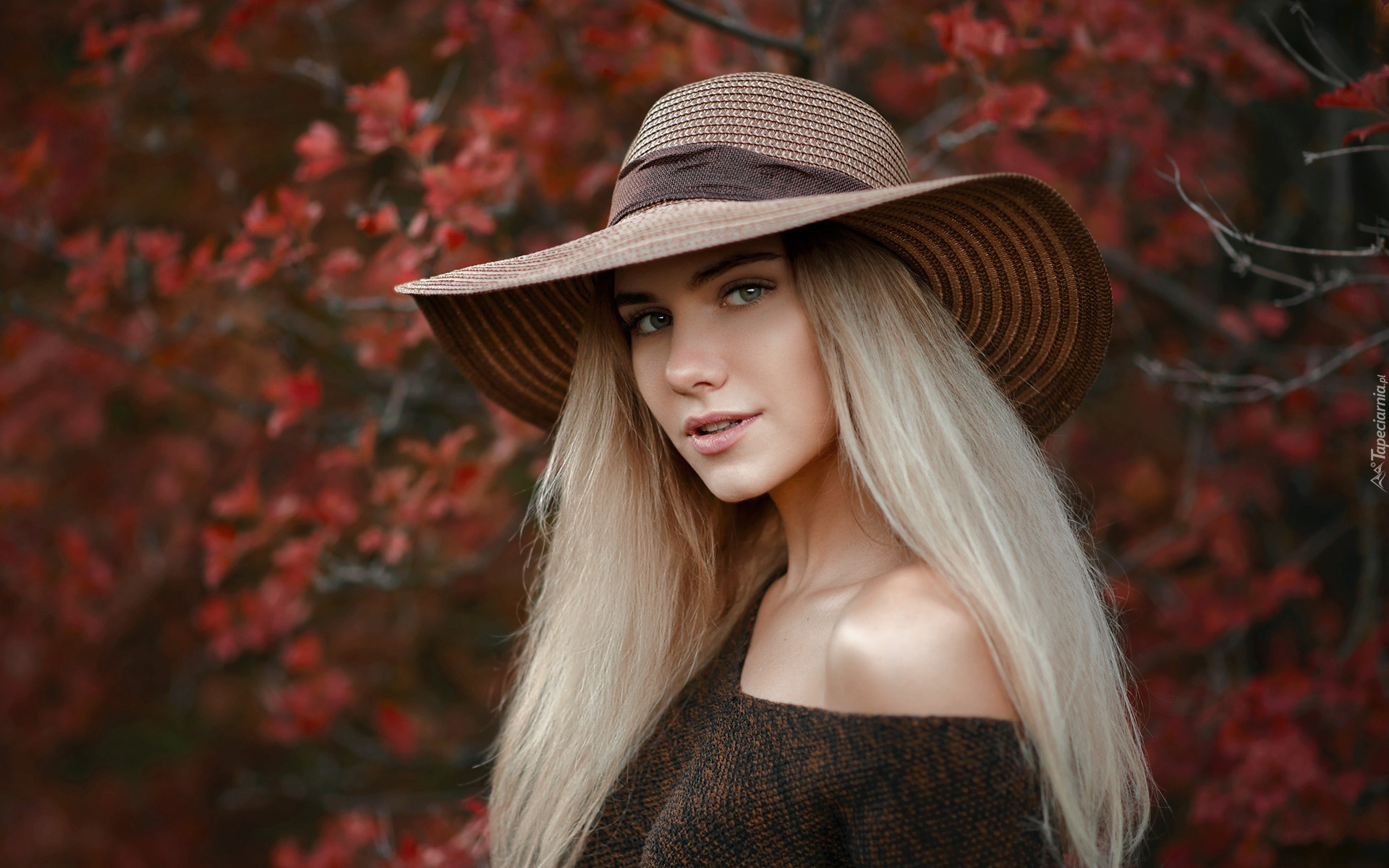 Edytor tapety: Długowłosa blondynka w kapeluszu