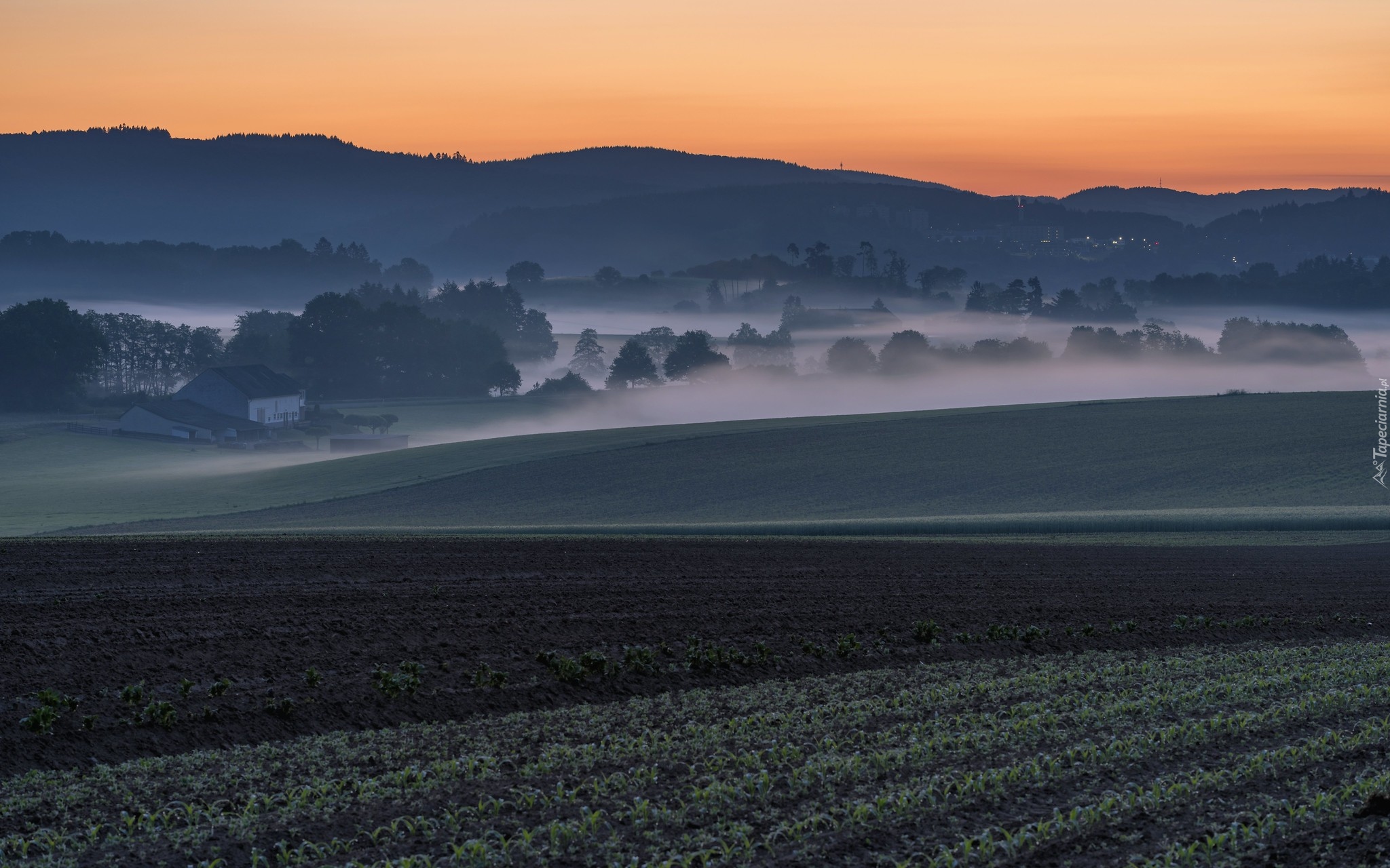 Edytor tapety: Mgła nad wsią