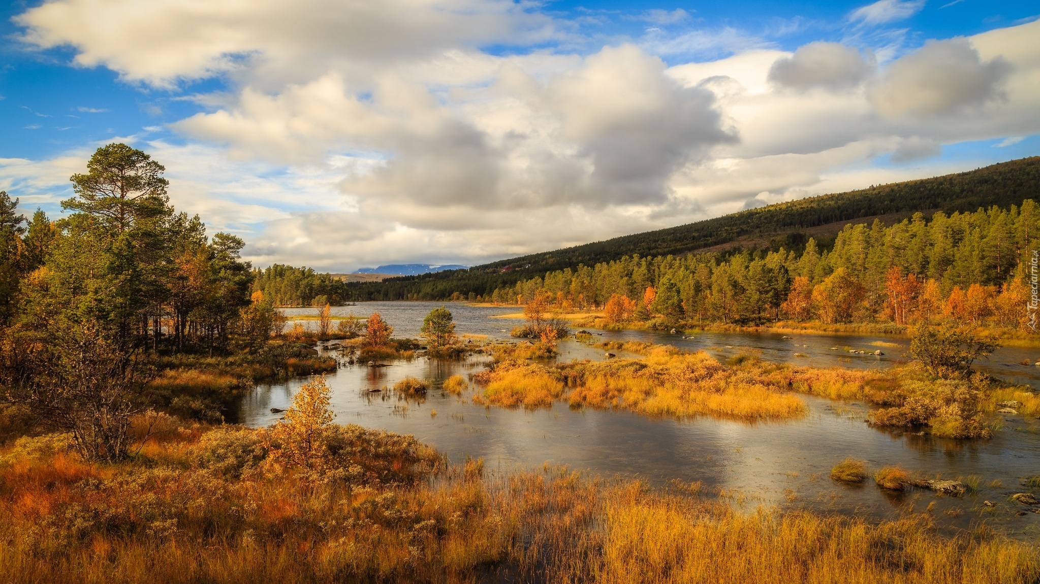 Edytor tapety: Pożółkła trawa w rzece i dookoła