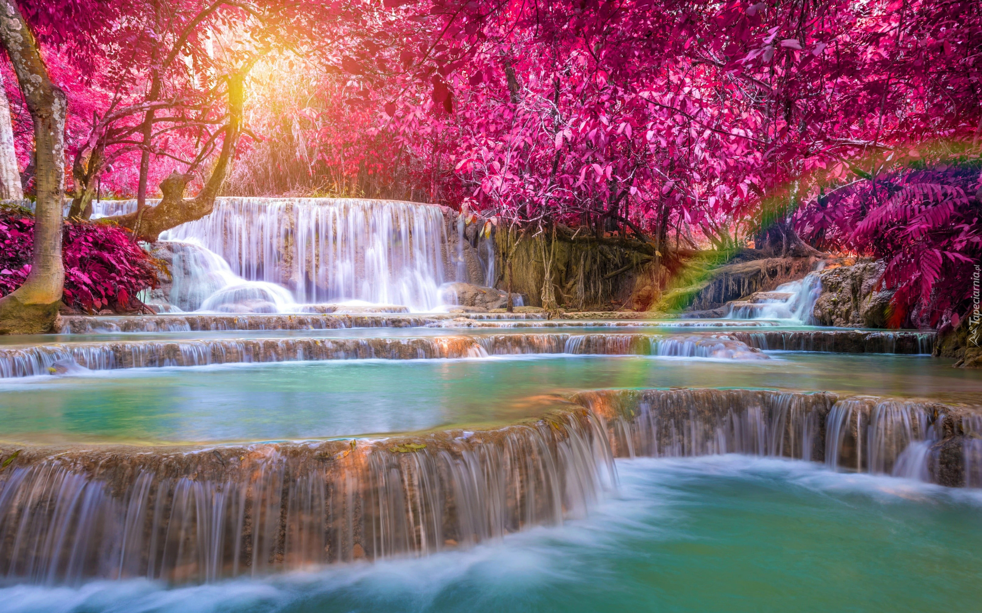 Edytor tapety: Wodospad Kuang Si Falls