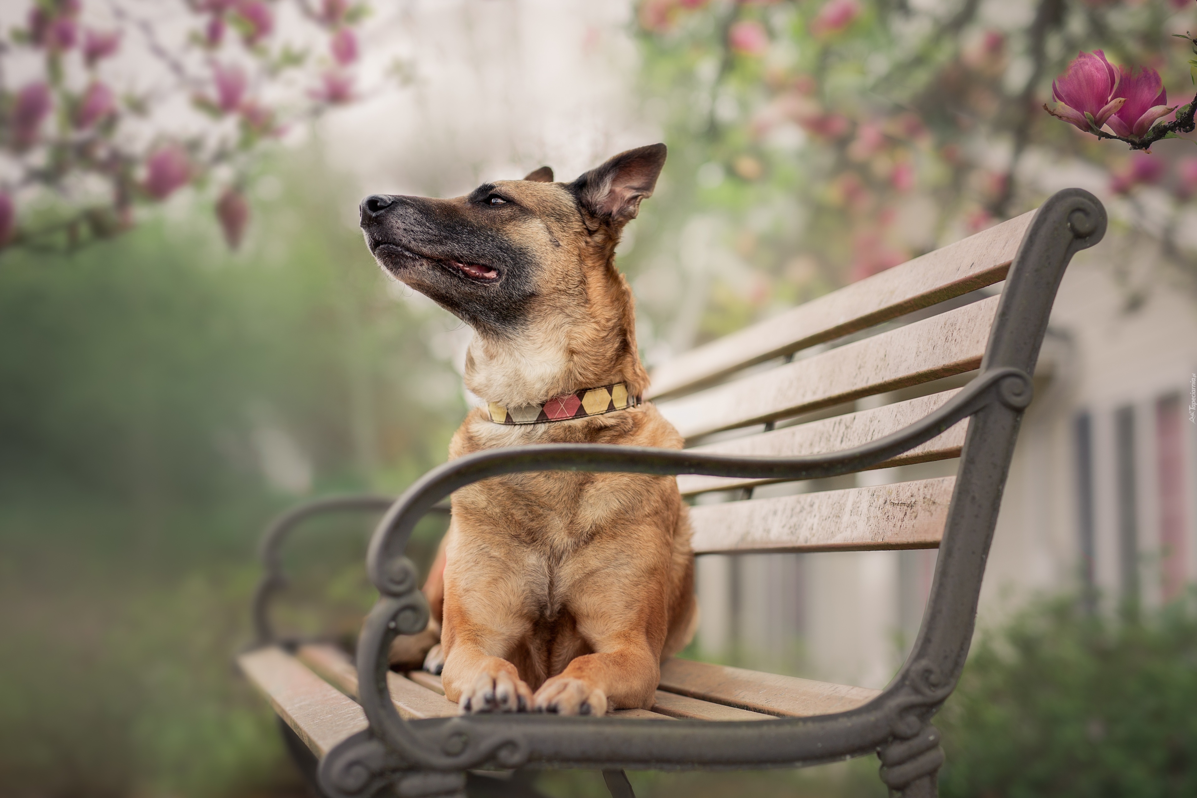 Edytor tapety: Pies leżący na ławce