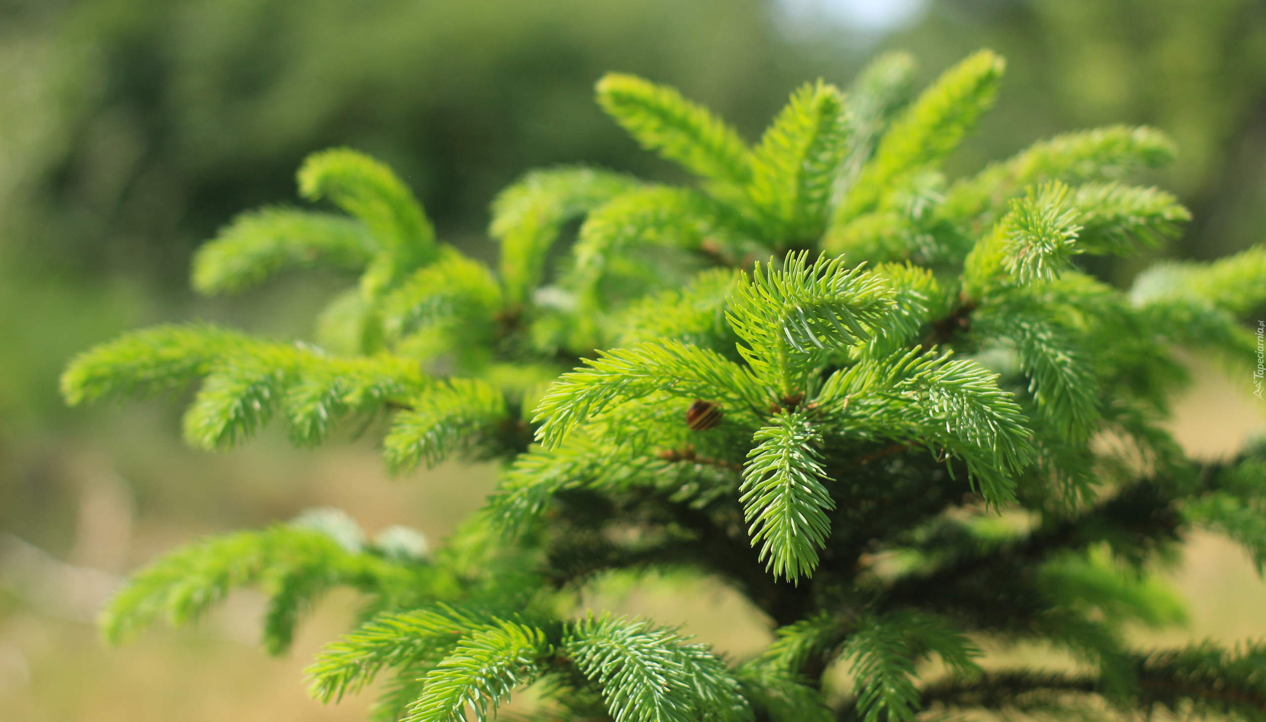 Edytor tapety: Gałązki świerku w słonecznym blasku