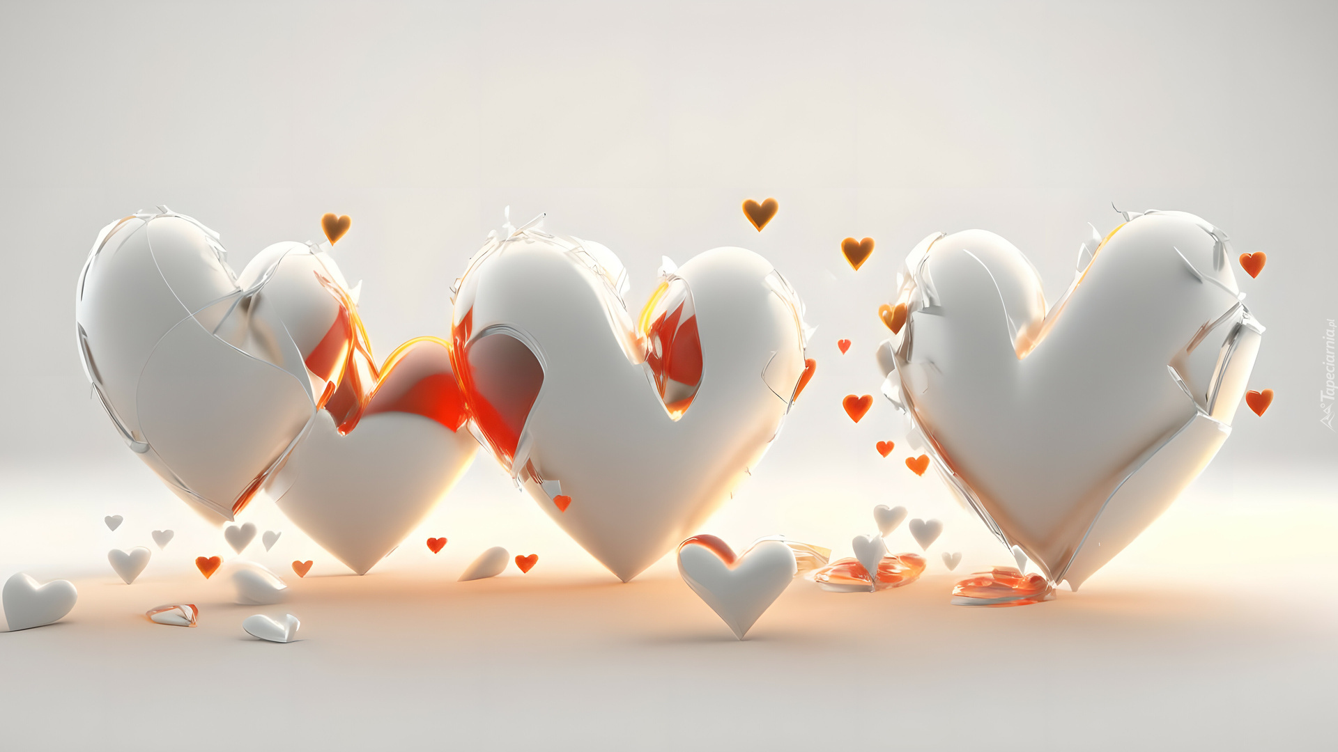 Edytor tapety: Cztery białe popękane serca na jasnym tle