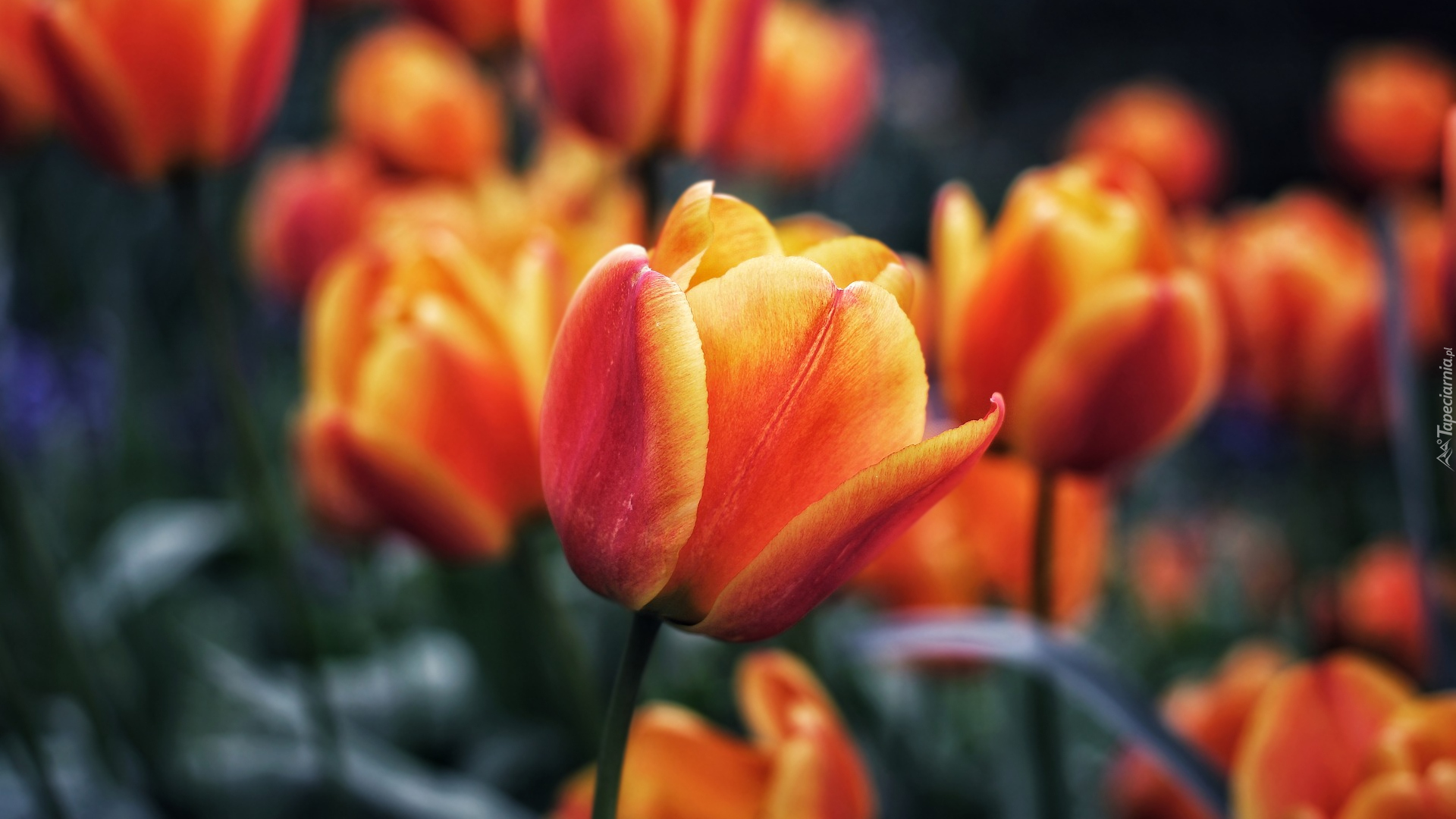 Edytor tapety: Pomarańczowo-żółte tulipany w rozmyciu