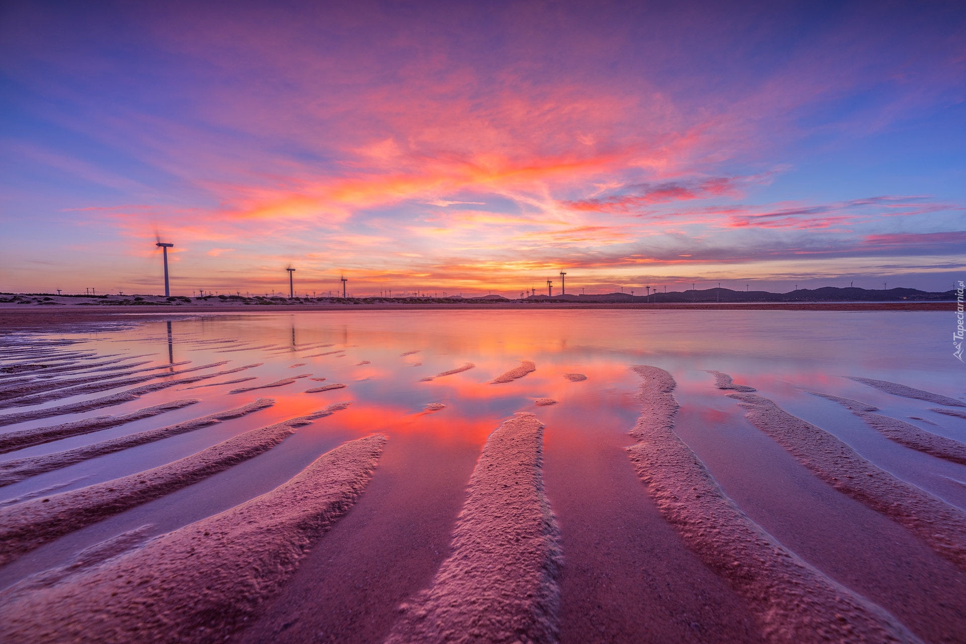 Edytor tapety: Wiatraki na tle kolorowego nieba