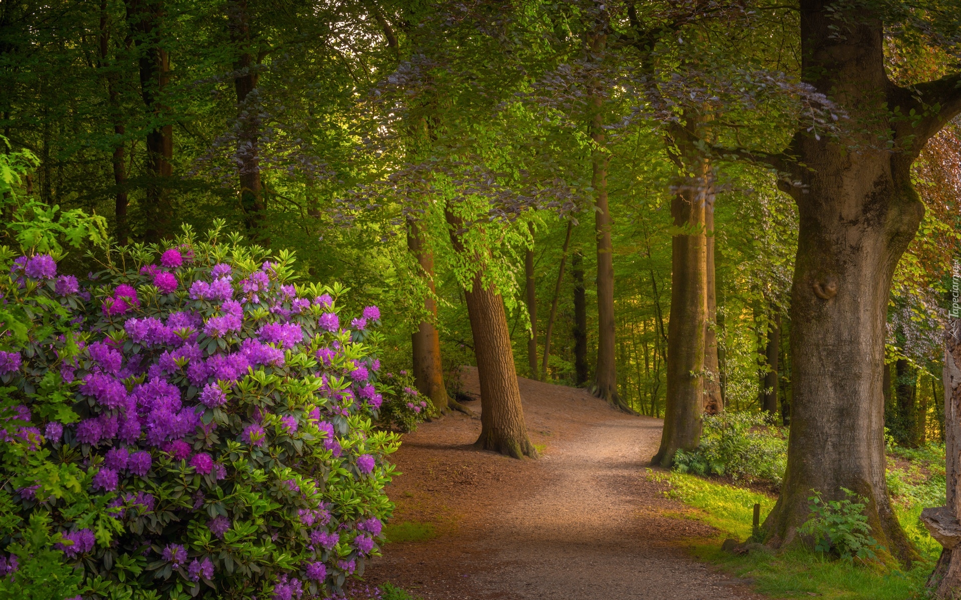 Edytor tapety: Rododendrony i drzewa przy ścieżce