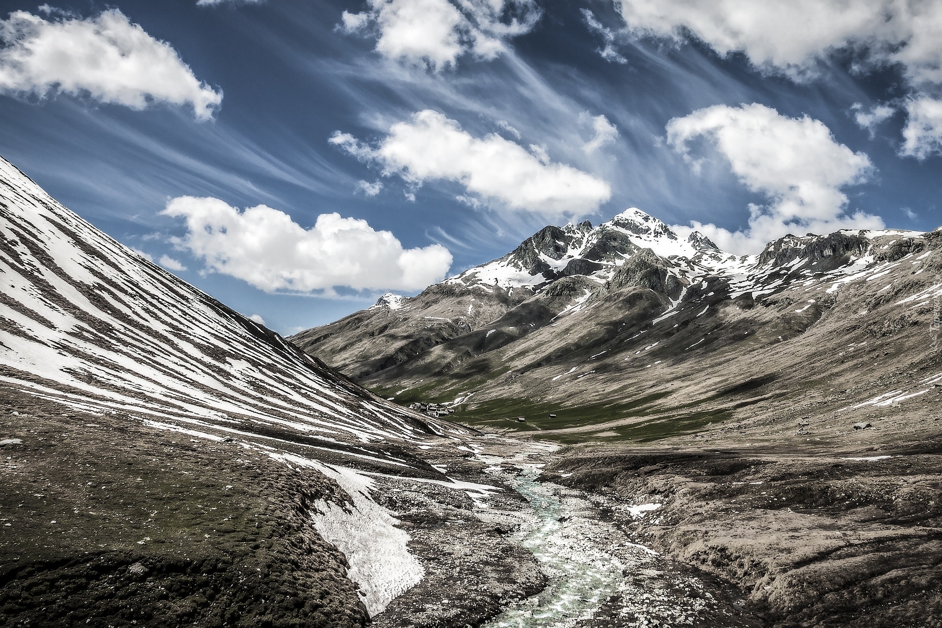 Edytor tapety: Ośnieżone góry i dolina