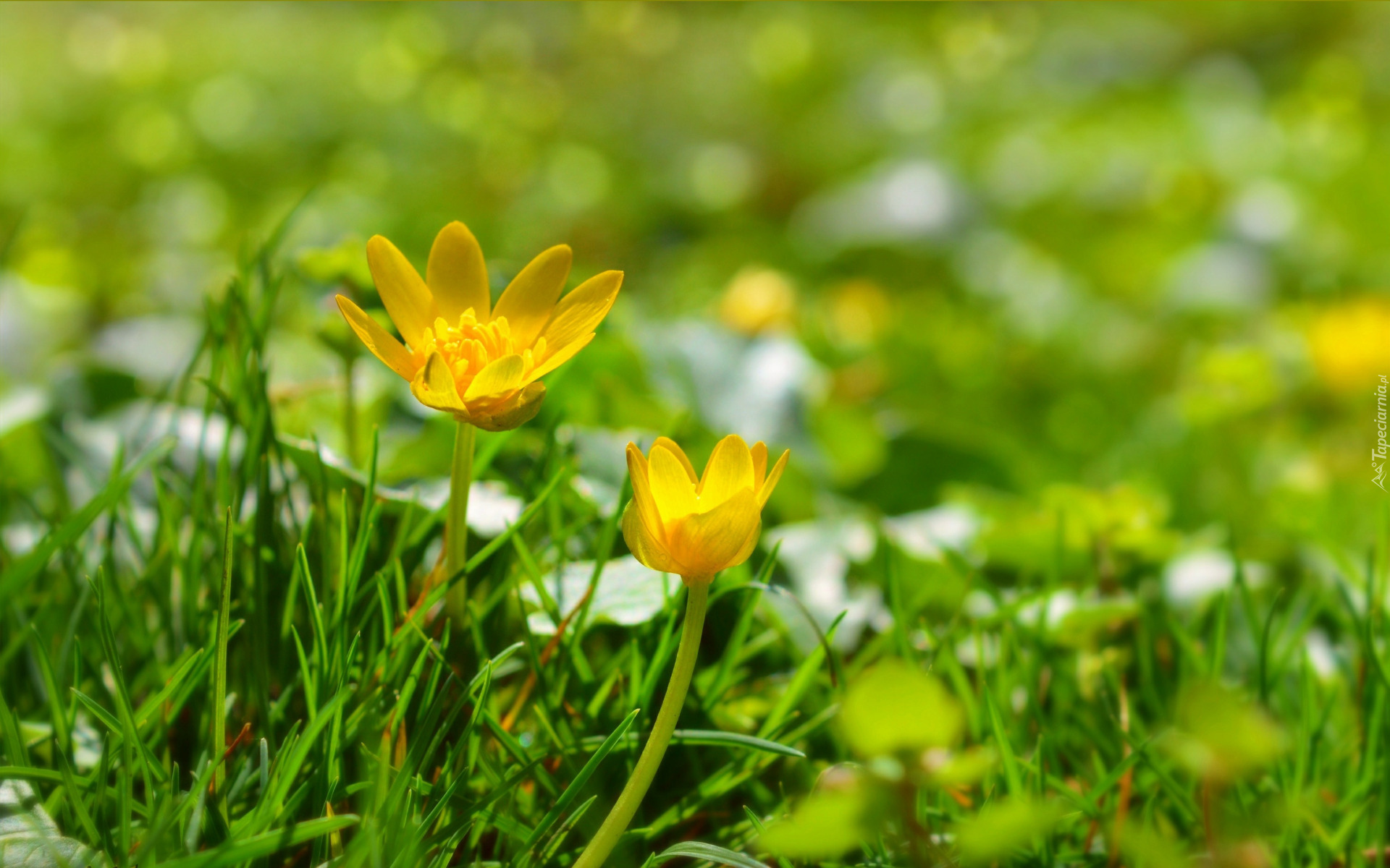 Edytor tapety: Dwa żółte kwiaty w trawie