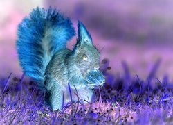 Edytor tapety: Ruda wiewiórka z orzechem w łapkach na trawie