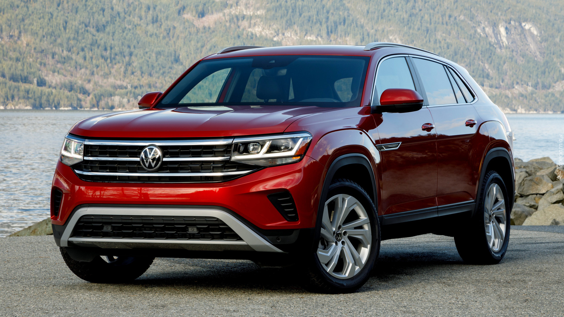 Edytor tapety: Czerwony Volkswagen Atlas Cross Sport