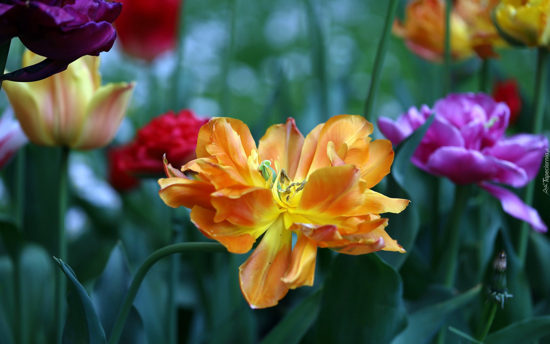 Edytor tapety: Rozkwitnięte kolorowe tulipany