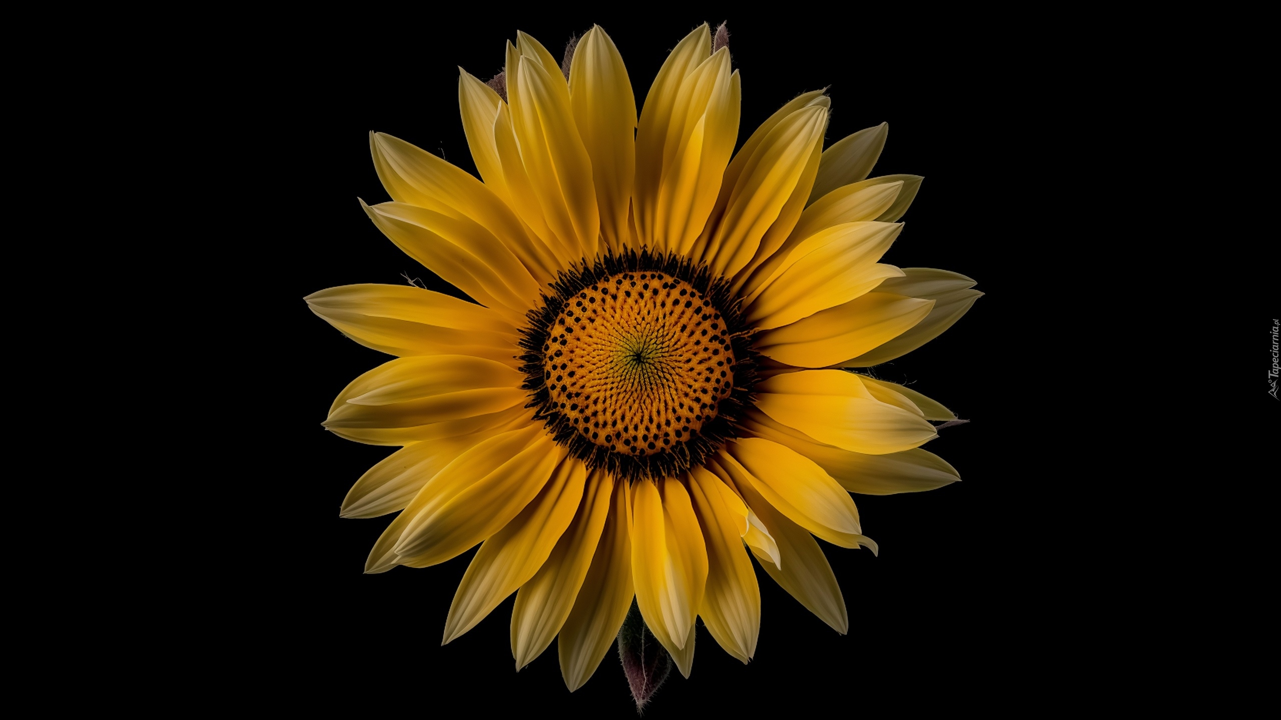 Edytor tapety: Żółty rozwinięty kwiat na czarnym tle
