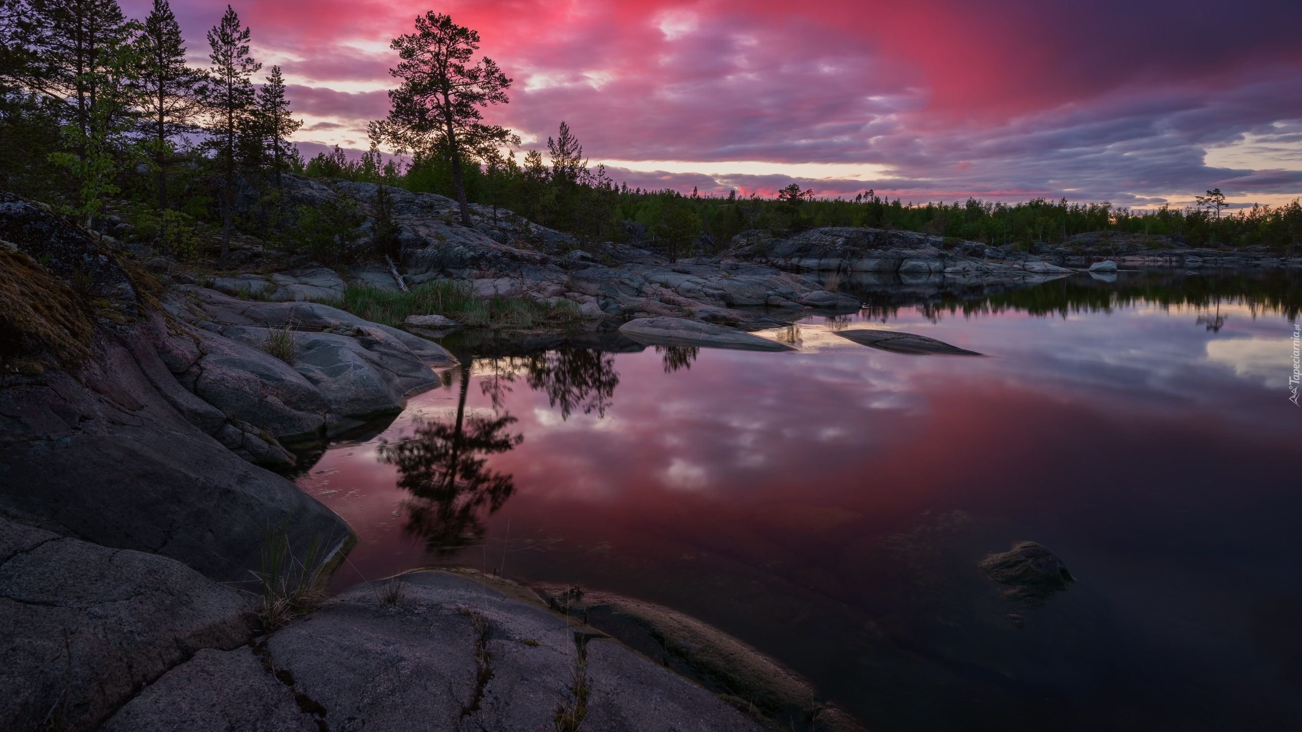 Edytor tapety: Zaróżowione niebo nad jeziorem Ładoga